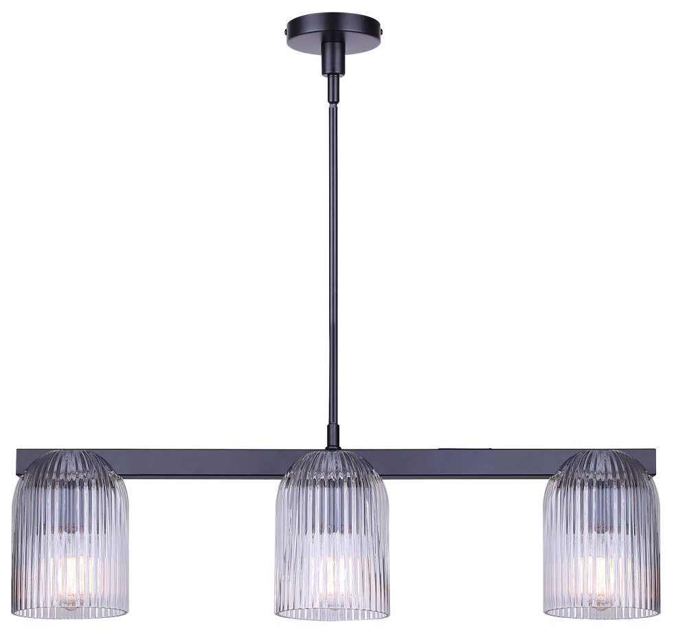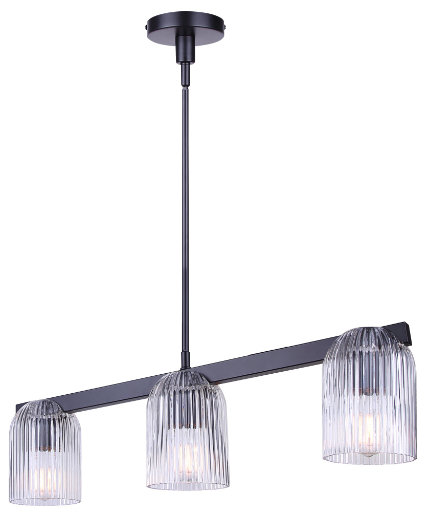 RENZO 3 Lt Chain Chandelier Matte Black with Clear Ribbed Glass