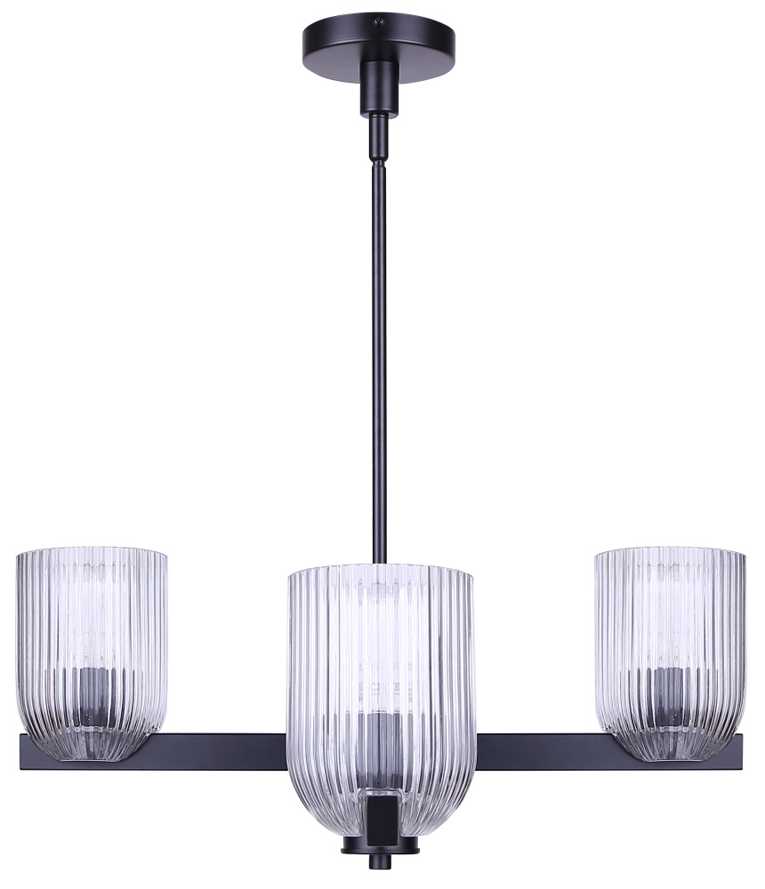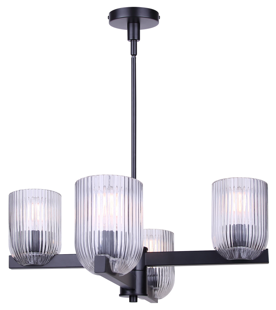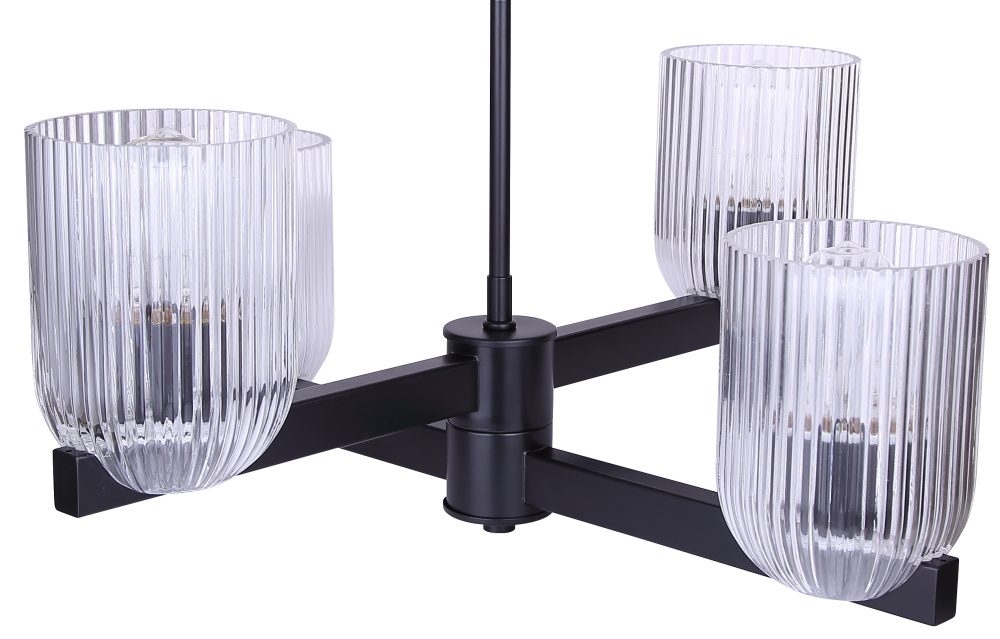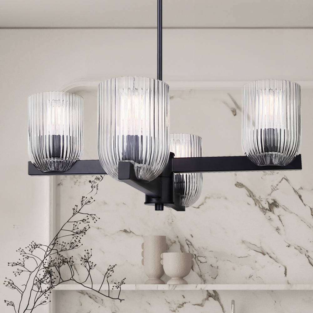 RENZO 4 Lt Chain Chandelier Matte Black with Clear Ribbed Glass