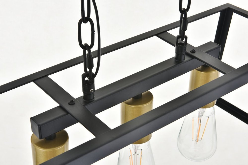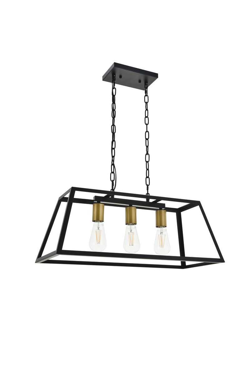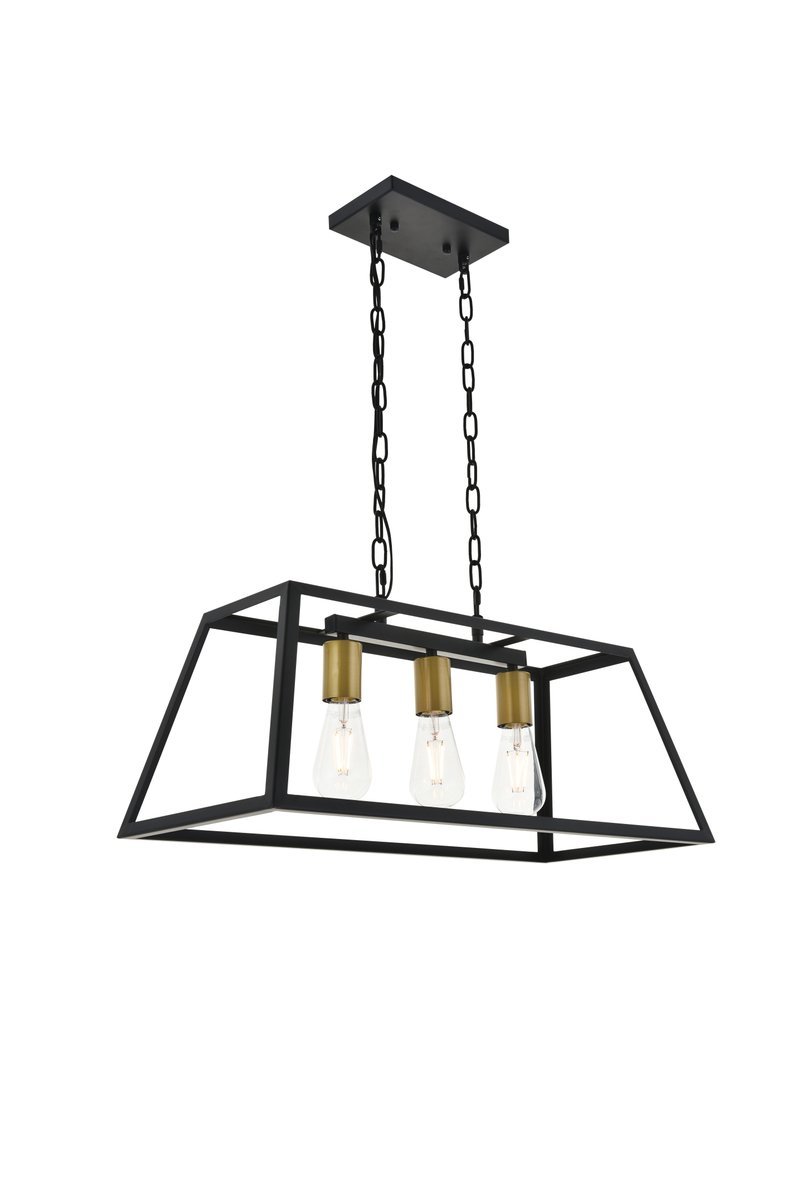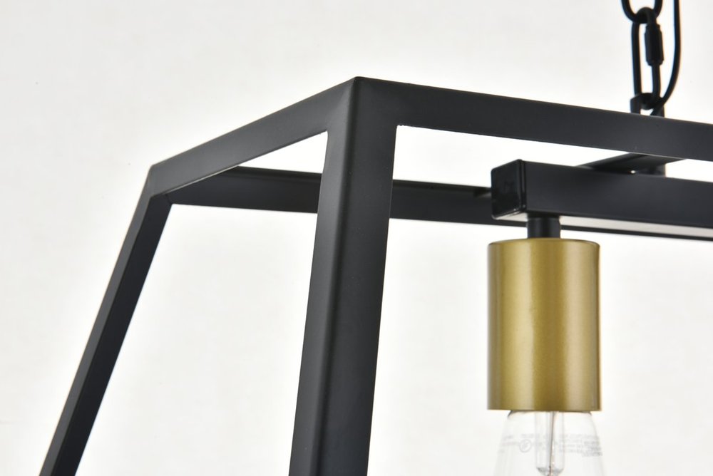 Modern two-toned brass and black finish 3-light pendant with an open geometric frame