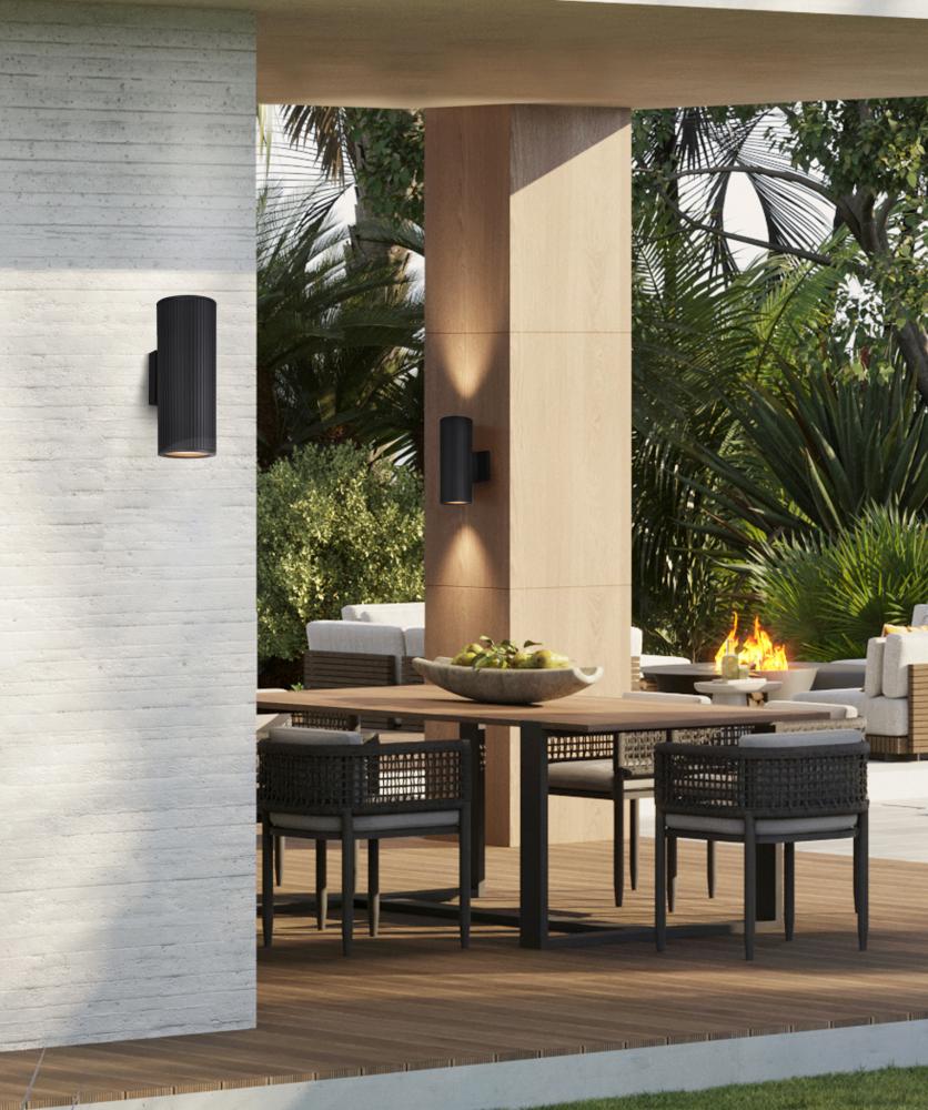 REXTON 2 Lt Contemporary Outdoor Wall Lantern, Black Finish, Up Down Light Fixture