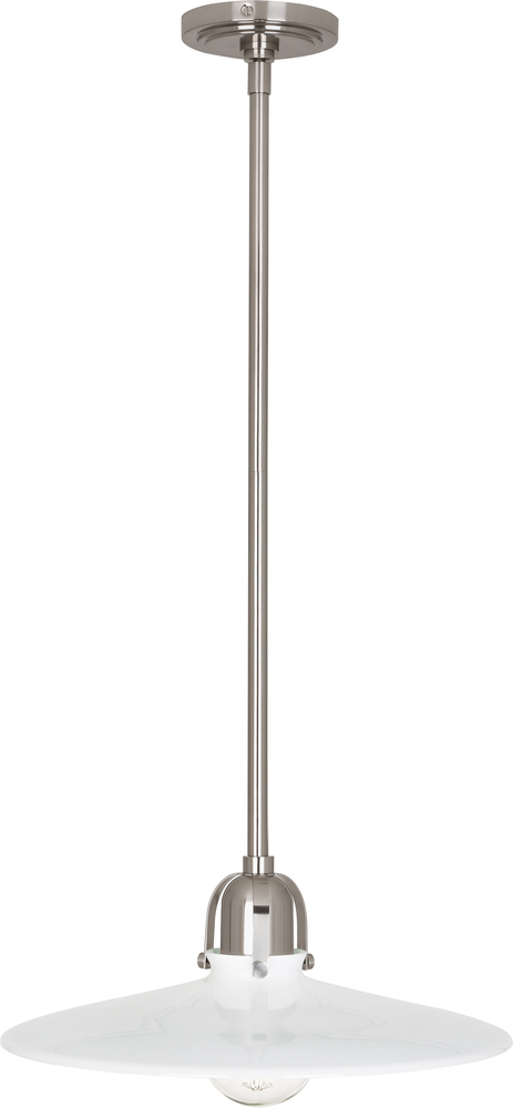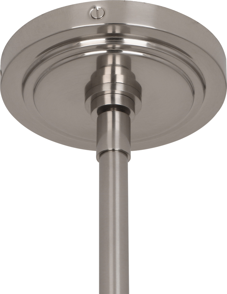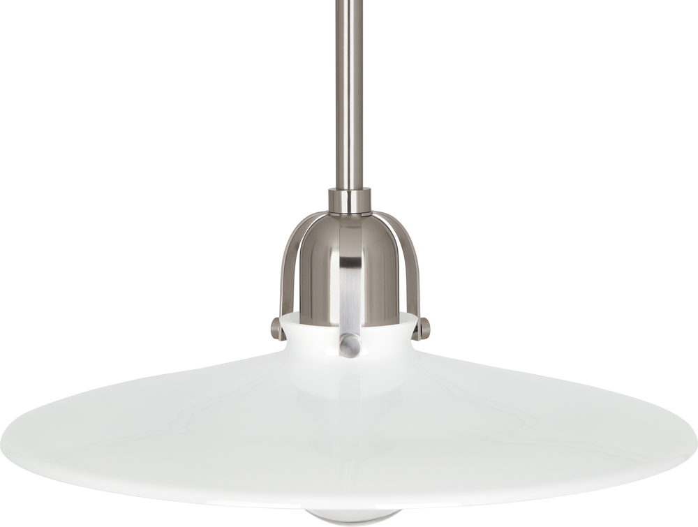 Minimal and ethereal, the Arial collection has a touch of industrial style that you will love. Sleek metal arms and knurled turn knobs provide interesting accents to the shallow frosted glass shade. These pieces are versatile and contemporary. - Antique Silver Rico Espinet Arial Pendant with White Glass