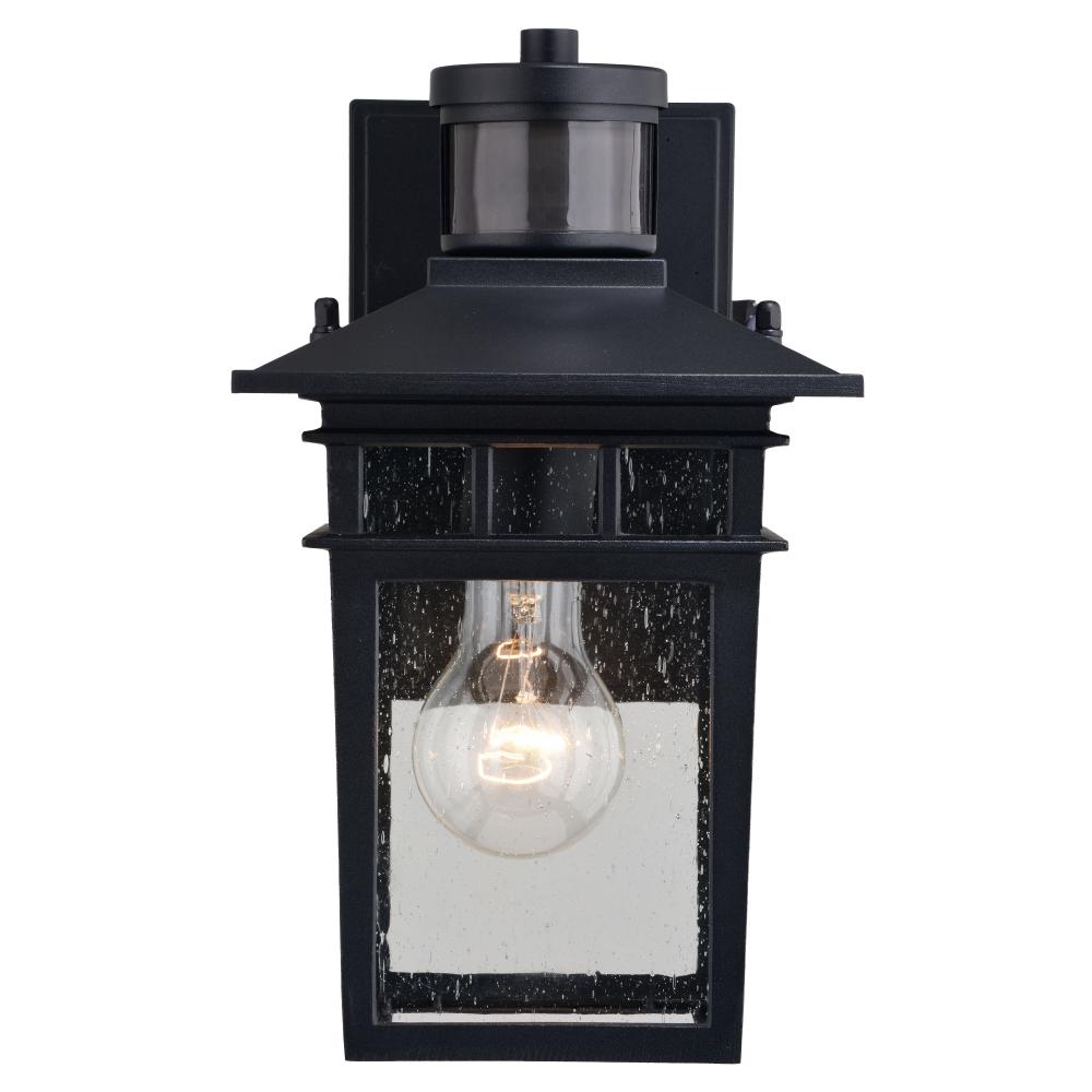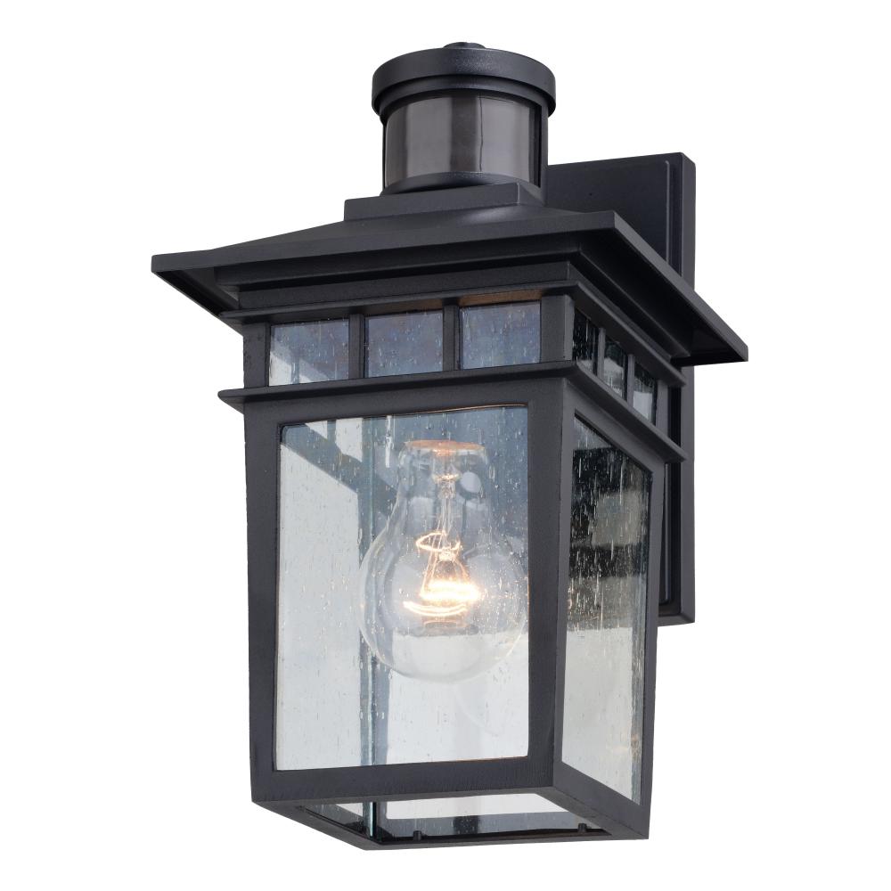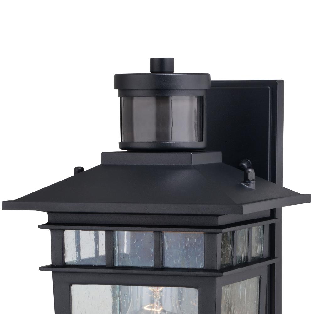 The Ridge collection with a textured black finish and clear seeded glass is modern mission styling at its best. Ideal for your porch, entryway, or any other outdoor area of your home. Dualux dual-level outdoor security lighting is designed to fit your lifestyle and enhance the beauty, safety, and usability of your home's exterior areas. Enjoy the comfort and convenience of automatic dusk-to-dawn lighting with low-level soft, ambient illumination overnight, fully brightening to high level whenever motion is detected to keep your property safe and secure. Standard on-off motion detection or full brightness dusk-to-dawn modes are also available via the EZSET controls. This fixture works with most dimmable LED bulb models. You get convenience, security, and efficiency of a security light integrated within a Dualux decorative outdoor light fixture.