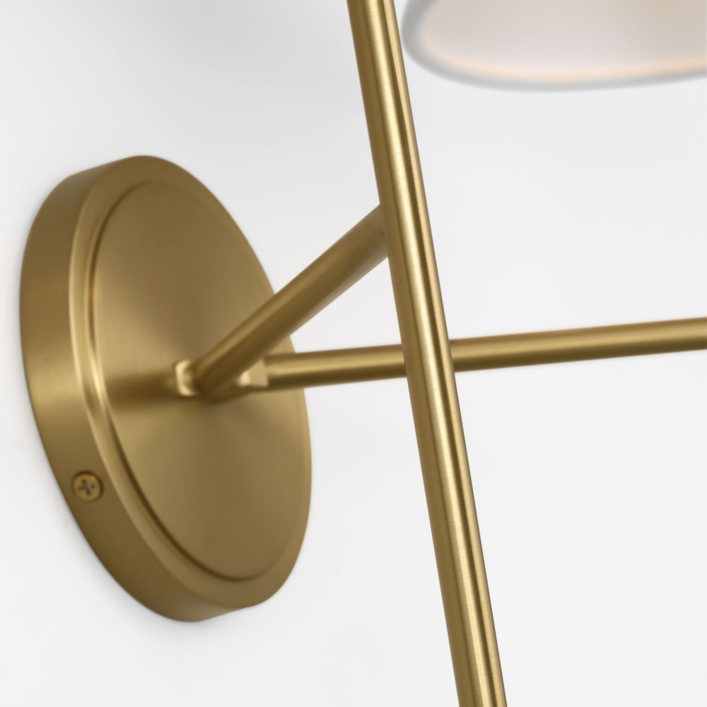 Crafted with Steel in a Burnished Brass finish with white linen fabric shades