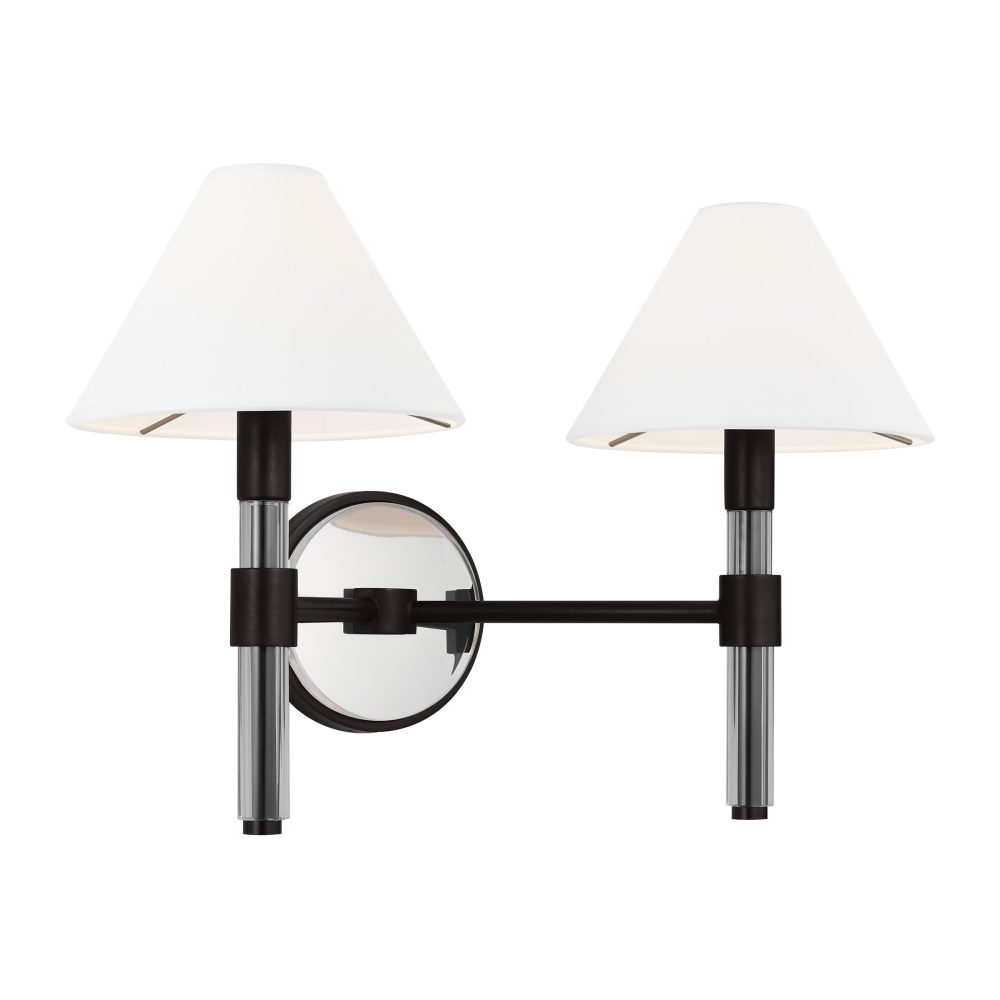 The Robert two light vanity has strong clean lines of Lucite stems that elevate and support the paper empire shades in this shapely series.