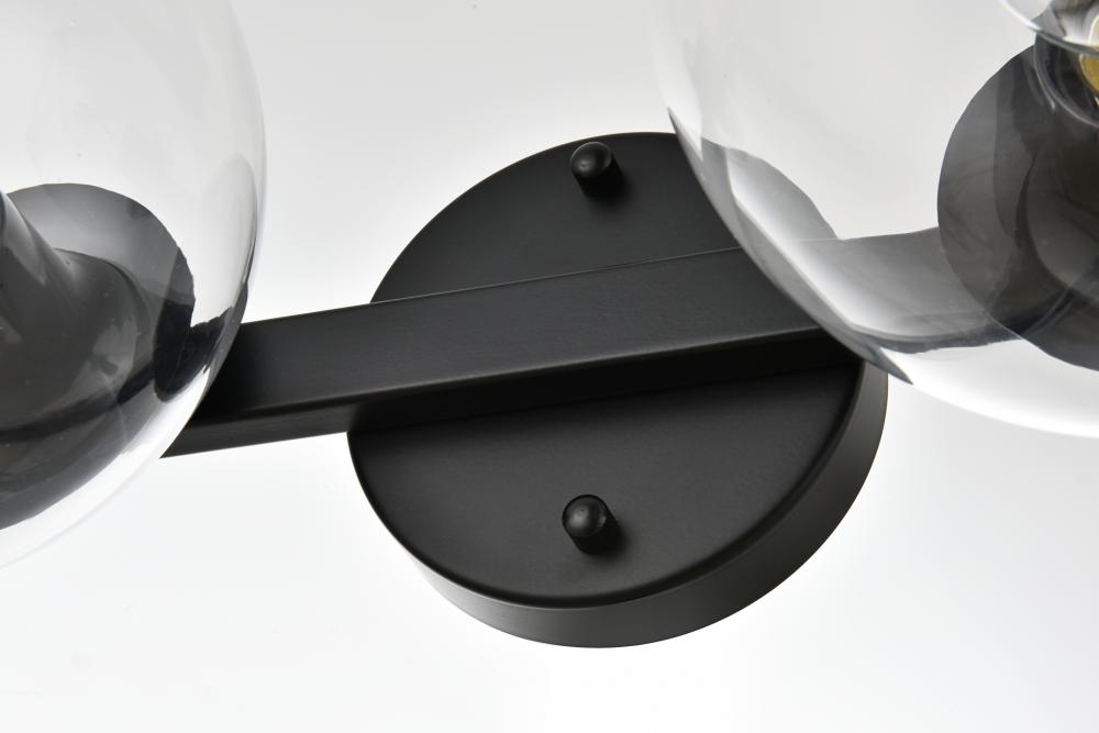 Turn up the brightness in your bathroom with this modern vanity light. This iron fixture features a streamlined silhouette and a smooth finish for a mid-century modern look. The circular backplate connects to one sleek arm design. The arm holds clear glass globe shades that accommodate medium-base bulb up to 40W, which are not included.