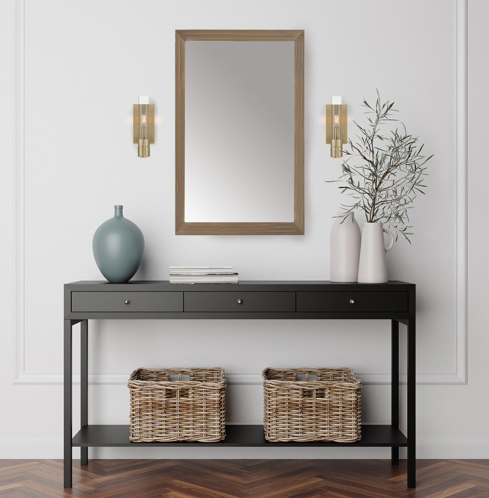 Gleaming with refinement and illumination, the Rohe Lighting Collection effortlessly transforms indoor spaces. These fixtures strike a balance between contemporary design and classic style by melding traditional silhouettes with modern lines. The Rohe lighting collection uses clean lines and minimal metal silhouettes to highlight its high-quality craftsmanship, stunning finishes, and illustrative radiance. Clear Glass cylindrical diffusers allow the exposed bulbs to flood your space. Try pairing these fixtures with tube style, 60-watt candelabra bulbs sold separately to create a chic look. Dimmer compatibility allows you to adjust the brightness to fit your lighting needs. Coordinate fixtures to create layers of light in your room with the multiple fixture types the Rohe series offers, including a Single Wall Sconce, Double Wall Sconce, and Chandelier.