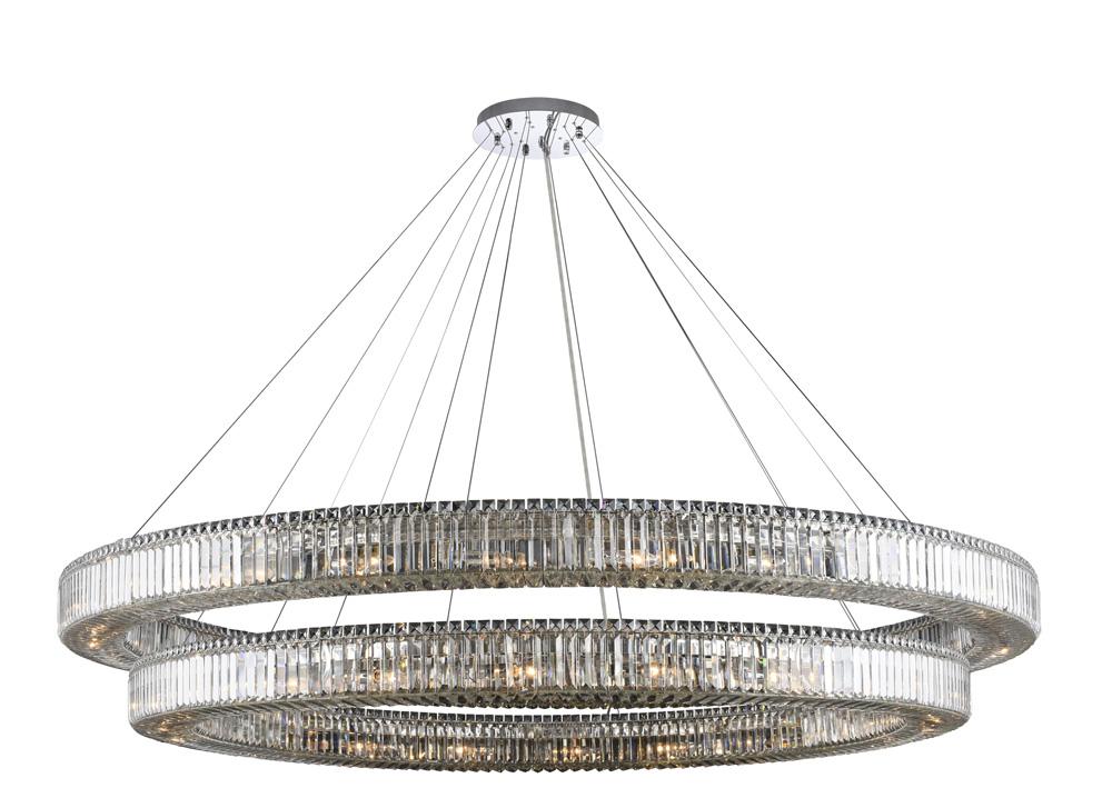 The Rondelle Collection features timeless single and multiple tier Polished Chrome (010) round pendants of Firenze Crystal baguettes and squares.