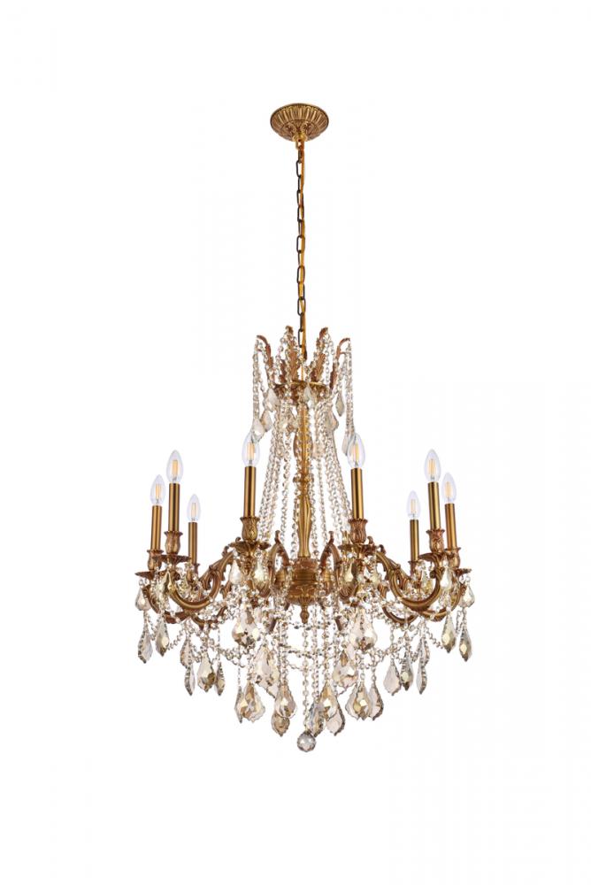 Rosalia 10 light French Gold Chandelier Golden Teak (Smoky) Royal Cut Crystal