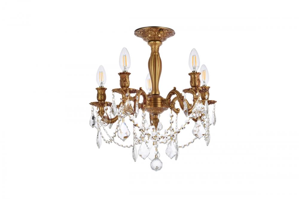 Rosalia 5 light French Gold Flush Mount Clear Royal Cut Crystal