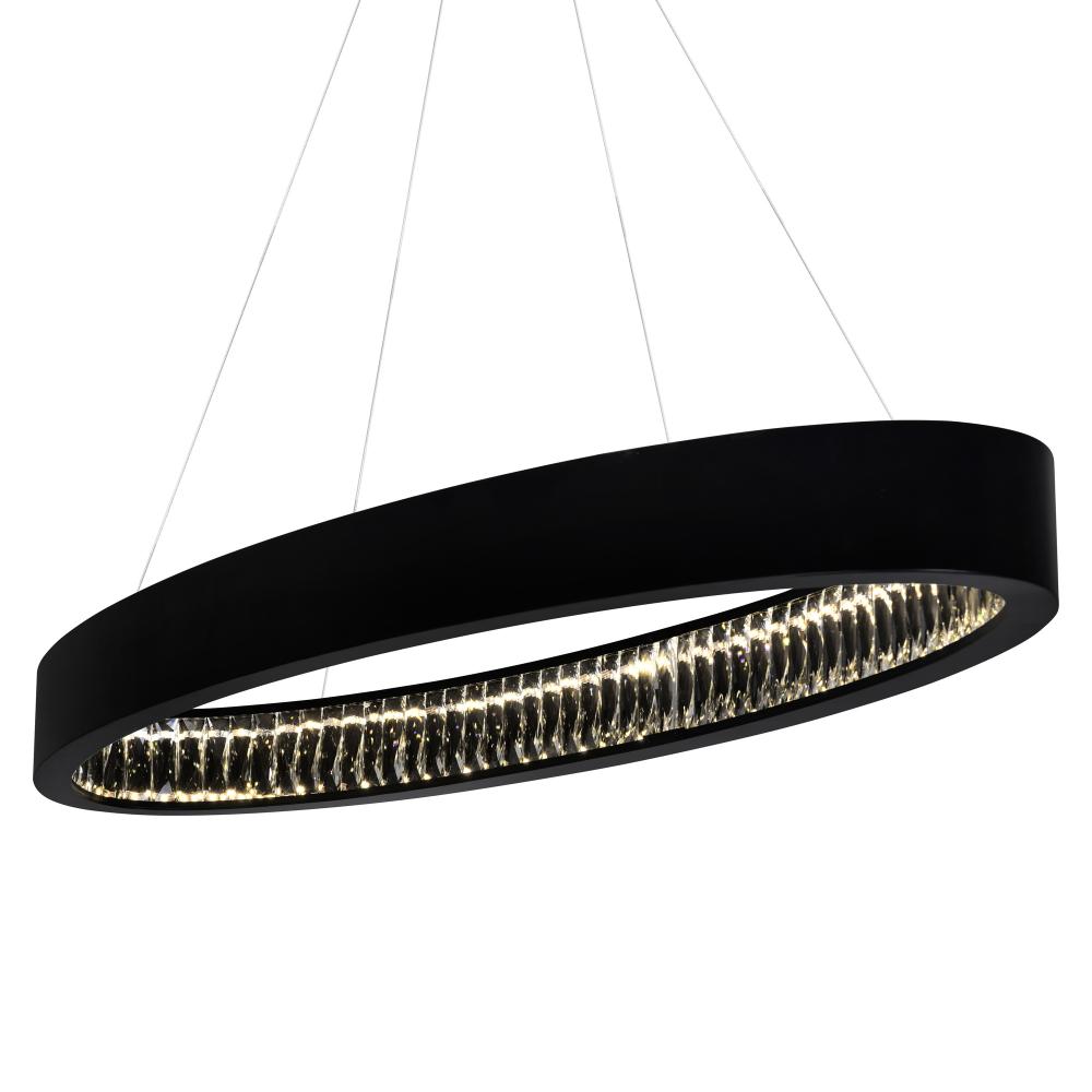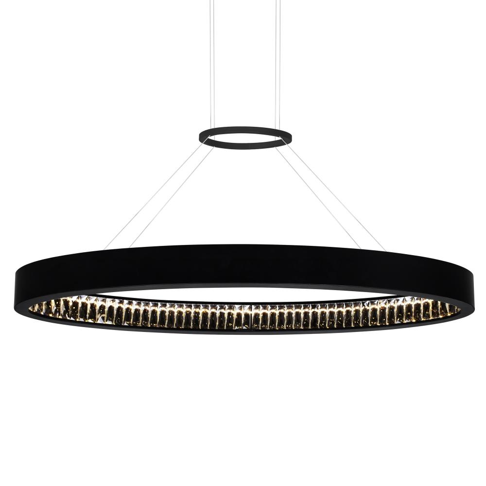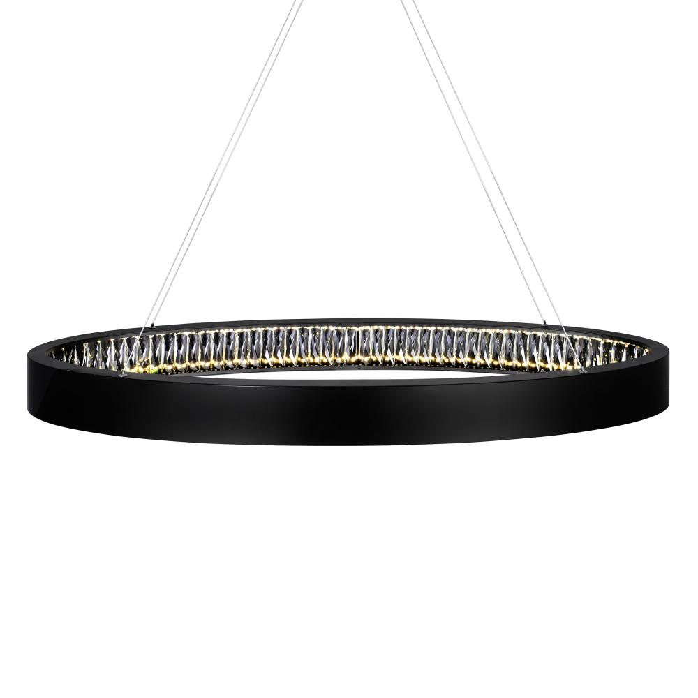 Defined by elegant simplicity, the Rosalina 42-inch LED Chandelier in Matte Black offers a sleek and versatile lighting solution for contemporary homes. Its minimalist design complements modern interiors while providing a warm, inviting glow. Customize your lighting experience by pairing this fixture with a dimmable ELV dimmer (sold separately) for adjustable brightness that suits any mood or occasion.
