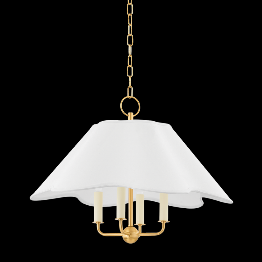 Rosanna takes a traditional form and reimagines it with feminine accents. Scalloping on the fabric shade feels fresh, breathing new life into the storied silhouette. The exposed candelabra base peeks through the shade, shining in a brilliant aged brass finish.