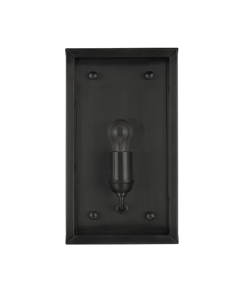 A classic design that looks as if it sprang from the great American industrial revolution, the Royster Black Outdoor Wall Sconce is made of brass in a matte black finish. The simplicity of the design will make this outdoor wall sconce a versatile pieces that will fit in with any number of architectural styles.