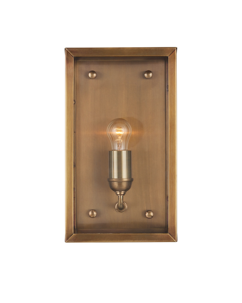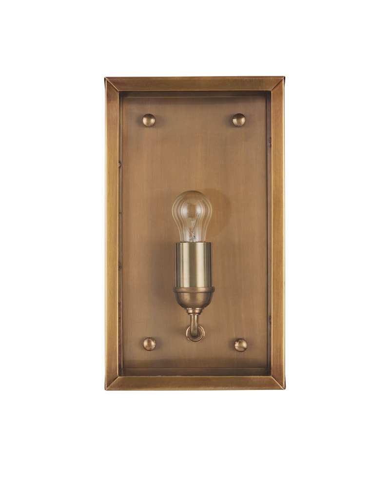 A classic design that looks as if it sprang from the great American industrial revolution, the Royster Brass Outdoor Wall Sconce is made of brass in an antique brass finish. The simplicity of the design will make this gold outdoor wall sconce a versatile piece that will fit in with any number of architectural styles.