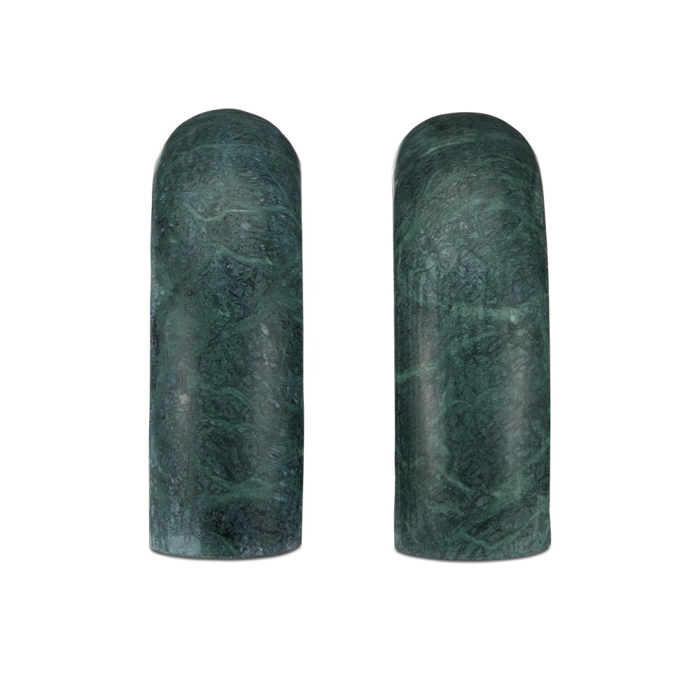 The Russo Green Object Set includes two marble sculptures that are versatile decorative accents; they will stand on their own as sculptures or will make excellent bookends. Because the pieces are made of natural marble, the veining of each will be slightly different, making each one unique.