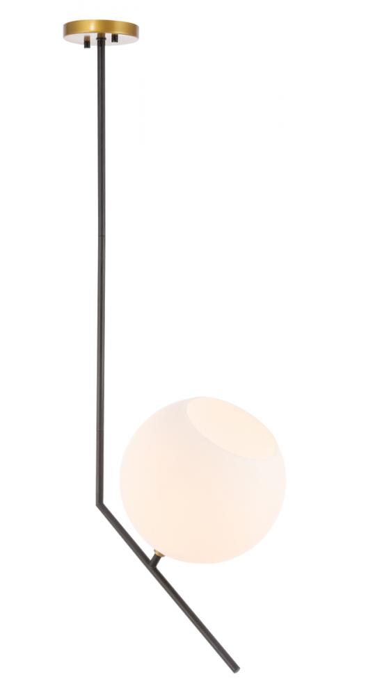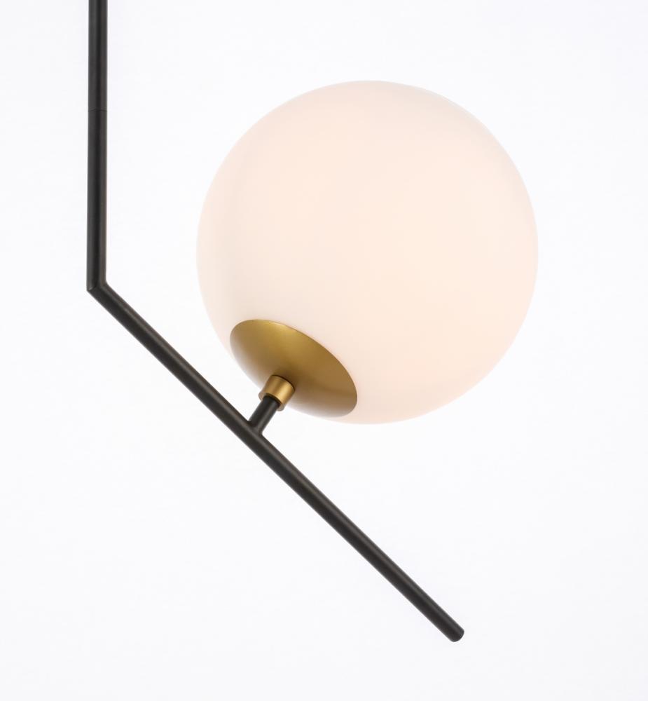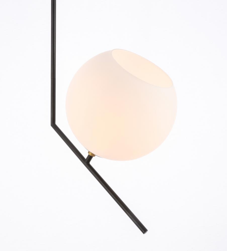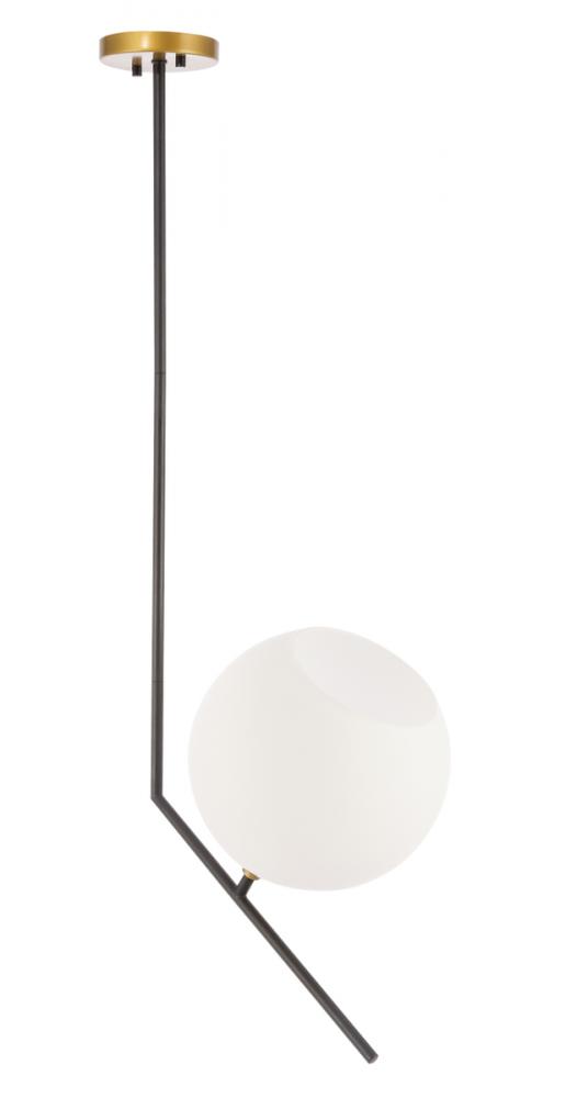 The Ryland Collection Pendant adds sophisticated elegance while still maintaining playful whimsy. The clean lines of the adjustable rod supports the light that is enclosed within the white frosted ball shade. Available in a brass, chrome, and two-toned black and brass finish, this fixture will add contemporary freshness to any room, your guests sure to notice your impeccable tastes in design (light bulbs not included).