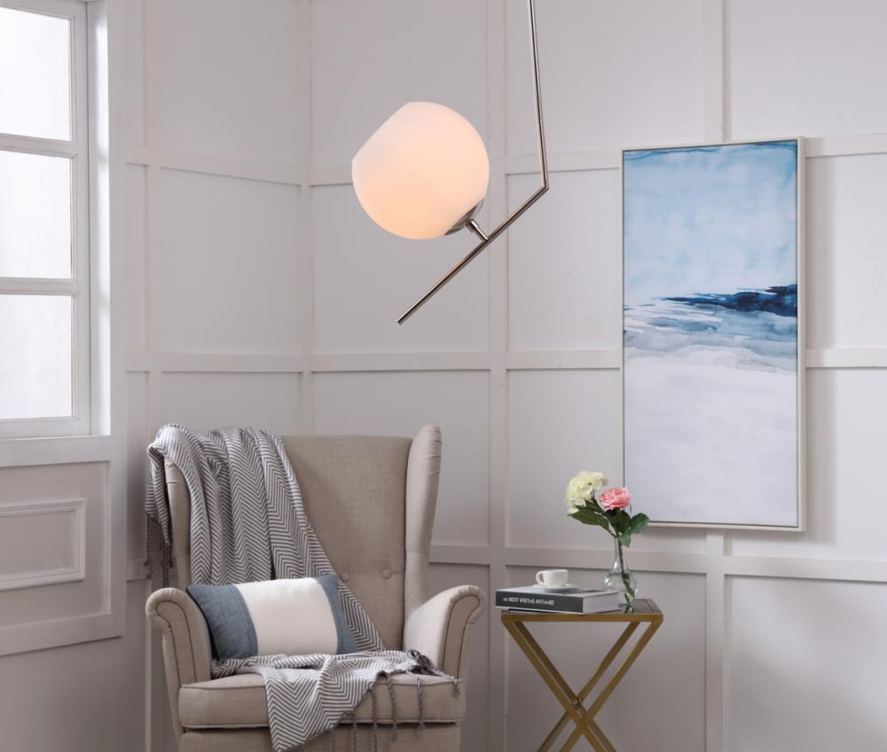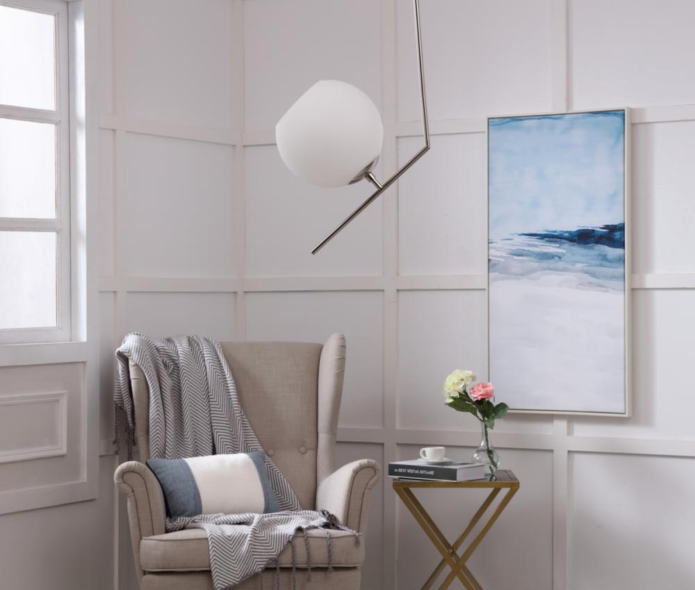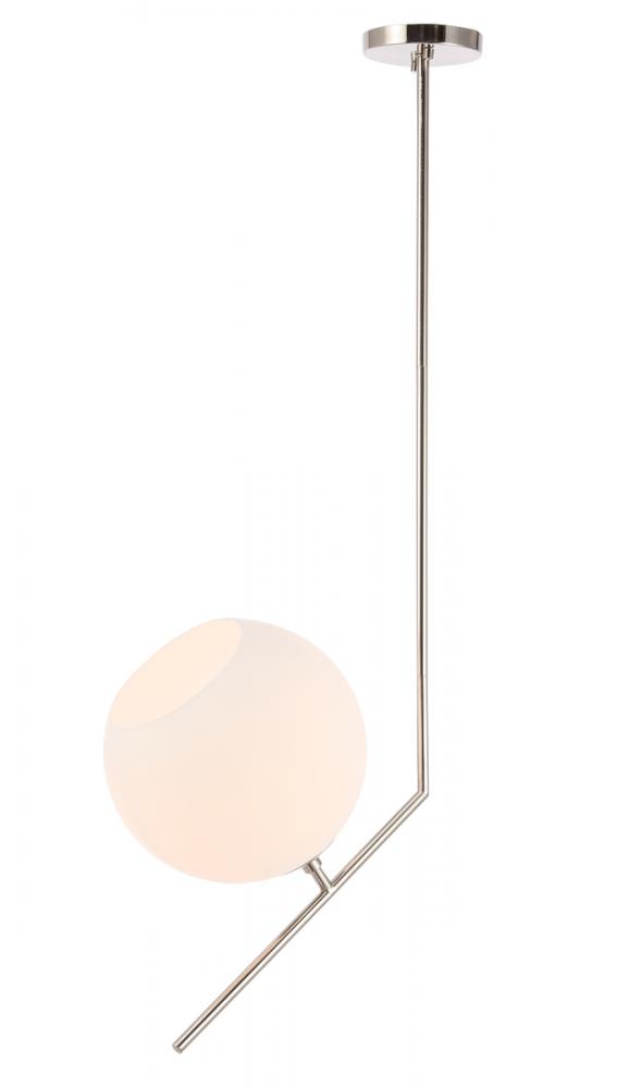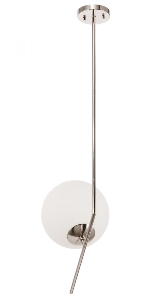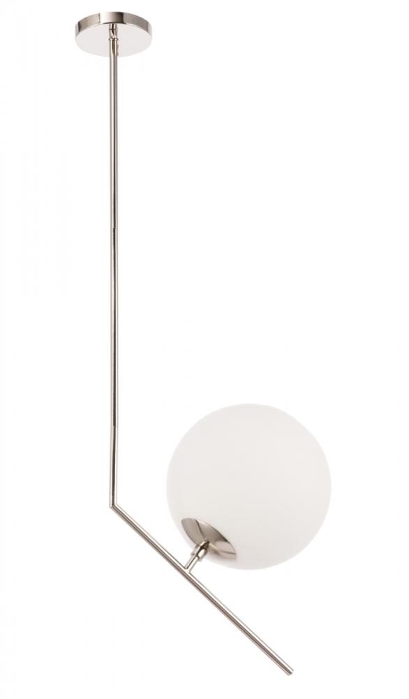 The Ryland Collection Pendant adds sophisticated elegance while still maintaining playful whimsy. The clean lines of the adjustable rod supports the light that is enclosed within the white frosted ball shade. Available in a brass, chrome, and two-toned black and brass finish, this fixture will add contemporary freshness to any room, your guests sure to notice your impeccable tastes in design (light bulbs not included).