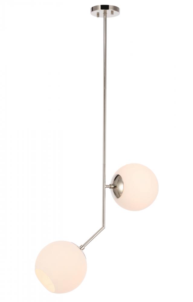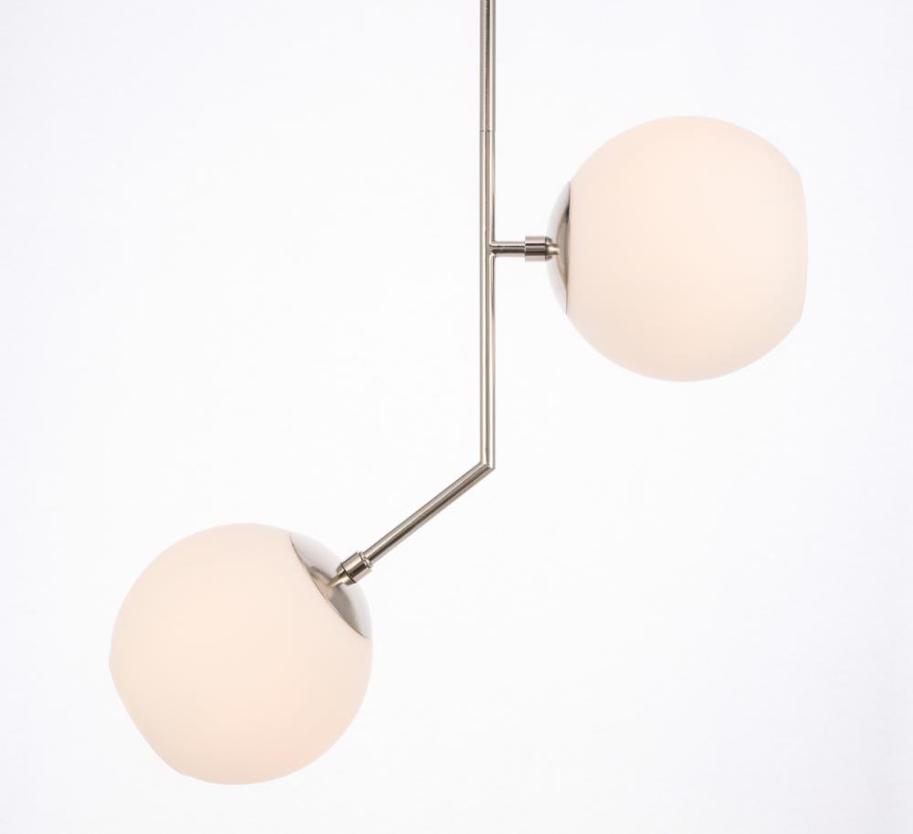 The Ryland Collection Pendant adds sophisticated elegance while still maintaining playful whimsy. The clean lines of the adjustable rod supports the lights that are enclosed within the white frosted ball shades. Available in a brass, chrome, and two-toned black and brass finish, this fixture will add contemporary freshness to any room, your guests sure to notice your impeccable tastes in design (light bulbs not included).