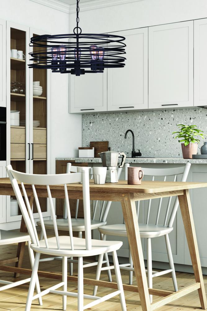 Transform your living space with the vintage charm of the Ryland 5 Light Pendant in a timeless Black Finish. This exquisite pendant captures the essence of classic elegance and functionality, making it an essential addition to your home decor.The Ryland Pendant boasts a stylish and modern matte black finish that adds a touch of sophistication to any room. With its 22-inch width, it makes a commanding statement in dining areas, kitchens, or suspended over kitchen islands.Designed to accommodate 100W Type A bulbs, the Ryland Pendant ensures ample and inviting illumination for your space. Its chain-hung design allows for height adjustability, providing an elegant suspension that complements the decor of your choice.This pendant effortlessly blends with contemporary or industrial-themed interiors, making it a versatile choice for any room. Its bold and architectural design adds character to any space it graces, creating a dramatic lighting centerpiece that captures attention.Experience the perfect blend of vintage charm and modern functionality with the Ryland 5 Light Pendant. Elevate your home's ambiance with this extraordinary lighting solution that combines style and substance.