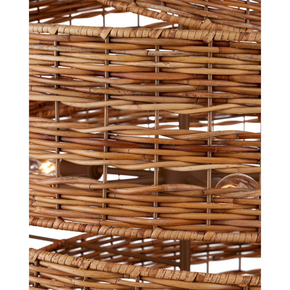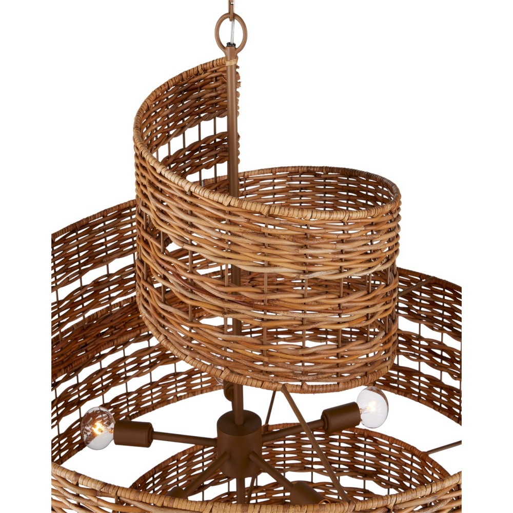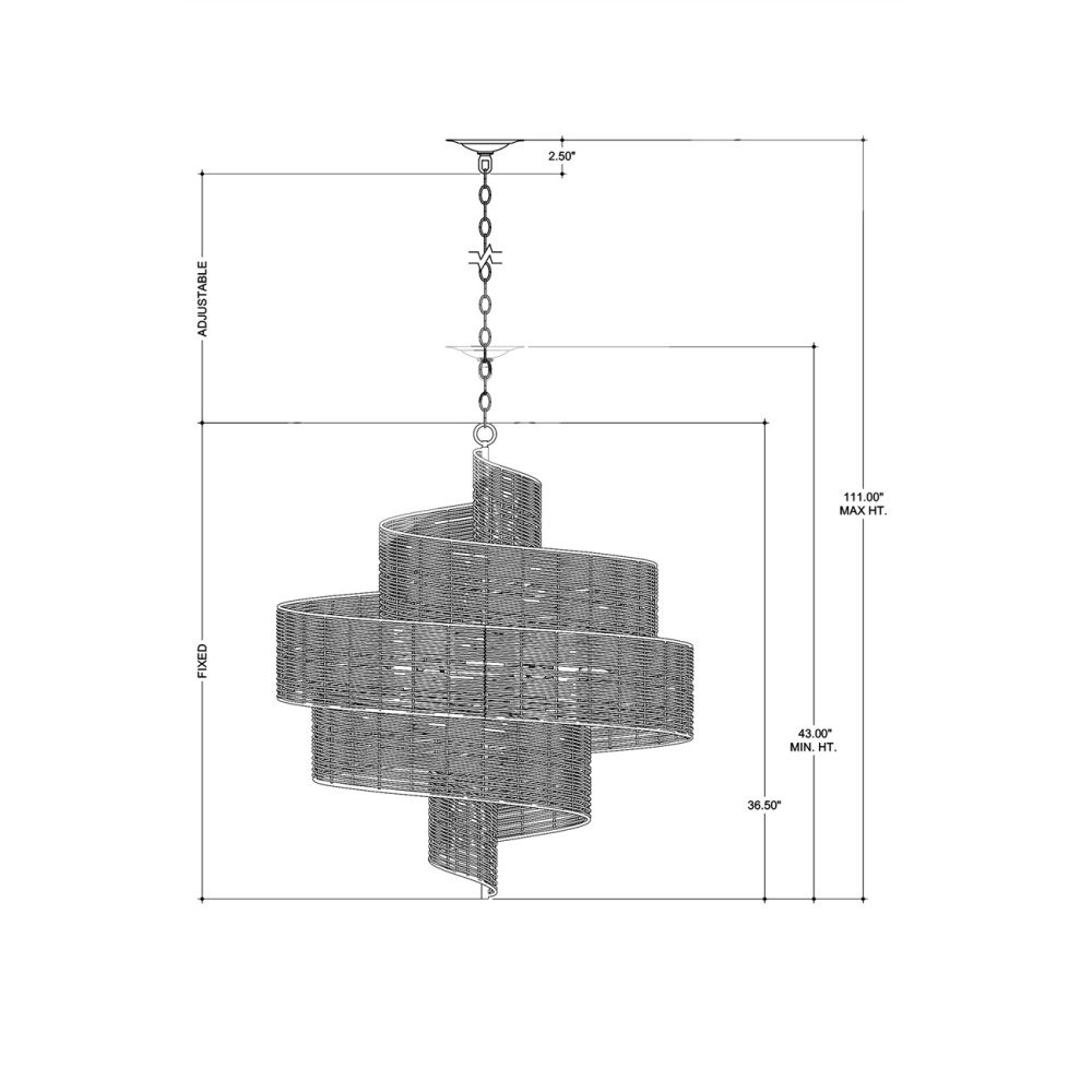 Hiroshi Koshitaka envisioned the Saisei Medium Chandelier as one of a number of fixtures he sees as fulfilling the concept that encompasses the acts involved in regeneration and reproduction as we restore, revive, and experience regrowth and rebirth. Rattan flows artfully around a spiral wrought iron frame in a khaki finish, which is tonally in sync with the natural color of the material. The otherworldly shape of this rattan chandelier was inspired by outer space — galaxies in the universe come to light. Adjustable from 43" to 111" with use of included chain/rod kit/cable. If your space calls for a longer drop, additional chain/rods/cable is available for purchase.