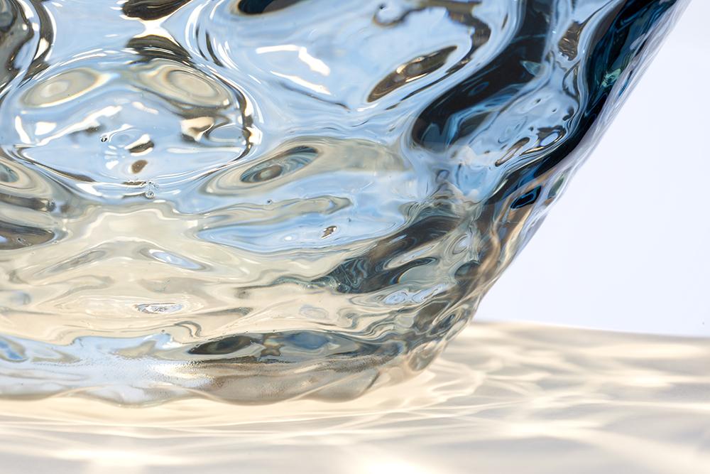 A UK-made table lamp with mouth-blown glass and dual-lit functionality. A four-way switch lights the blue glass base and white shade. LED-compatible with a medium bulb, it suits bedside or living rooms.