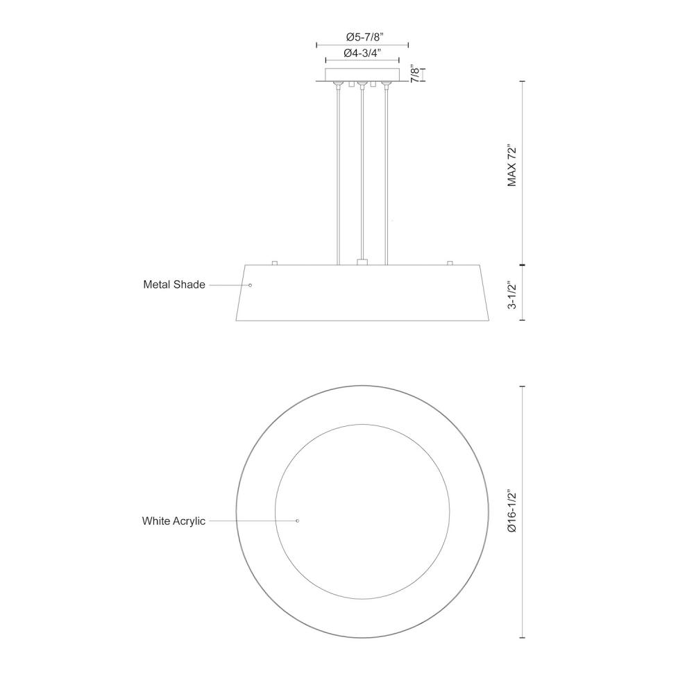 The Sampson pendant envelops a luminous opal dome that casts light down and outward, showcasing the metallic inner shade coating. Contrasting the powder-coated interior the substantial surfaces of the drum exterior are matte, emphasizing the visual impact of the lamp. Available in two curated color combinations, Black with Gold or White with Silver.