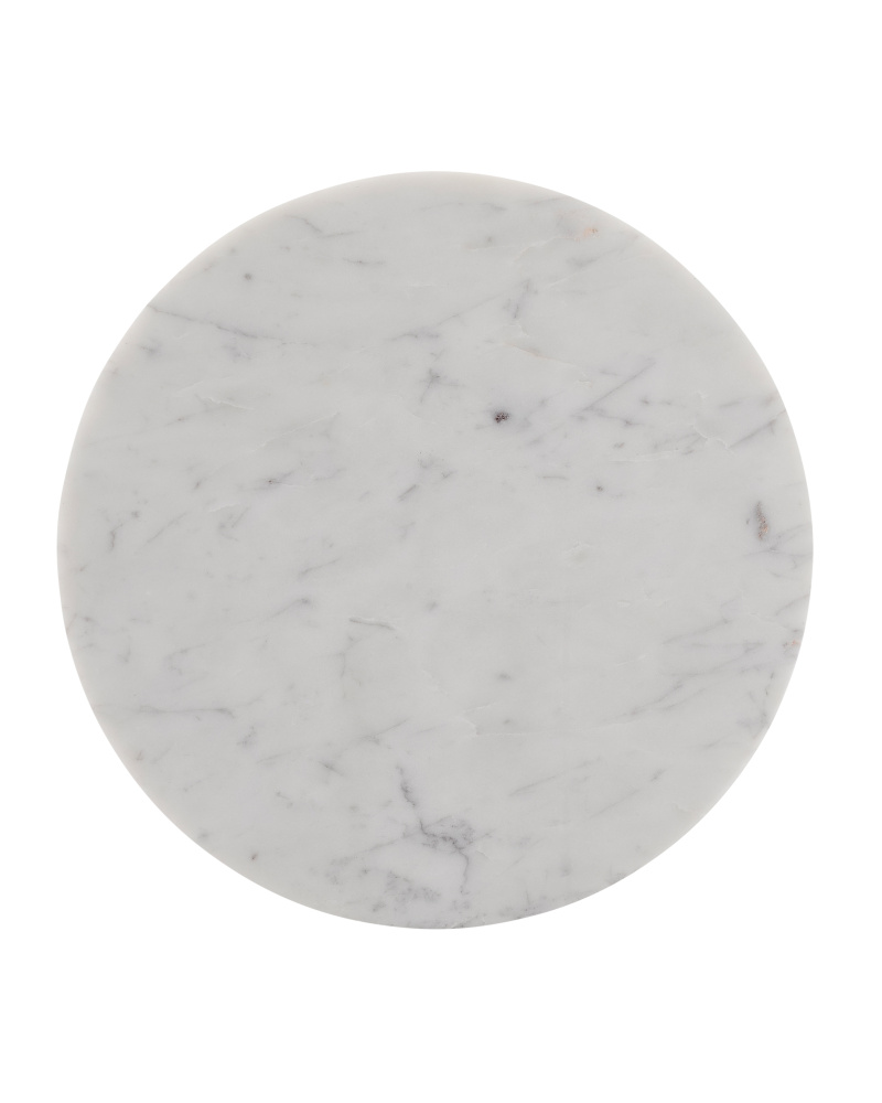 The Sasha White Drinks Table is made of white marble, the pale gray veining that runs along the table's surface making each of these hand-carved pieces unique.