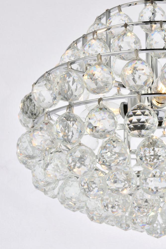 Tiers of clear multi-faceted crystals reflect the soft glow of candelabra bulbs