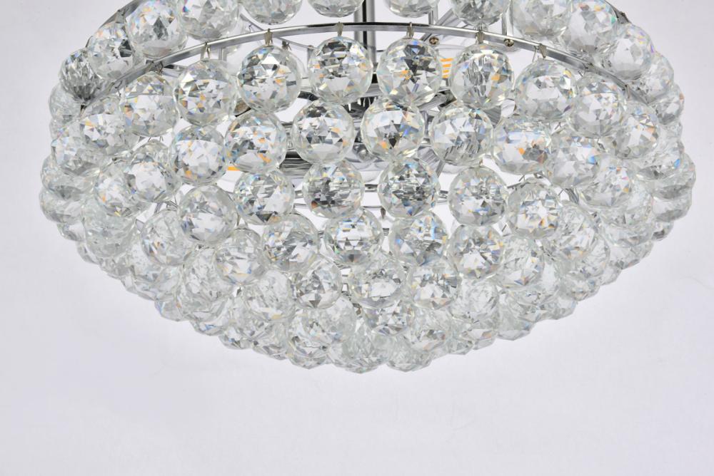 Tiers of clear multi-faceted crystals reflect the soft glow of candelabra bulbs