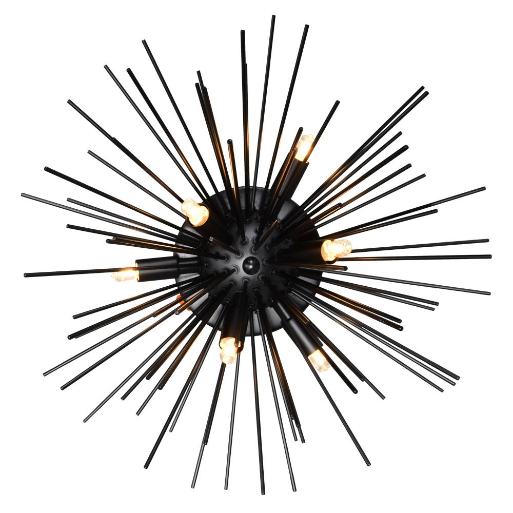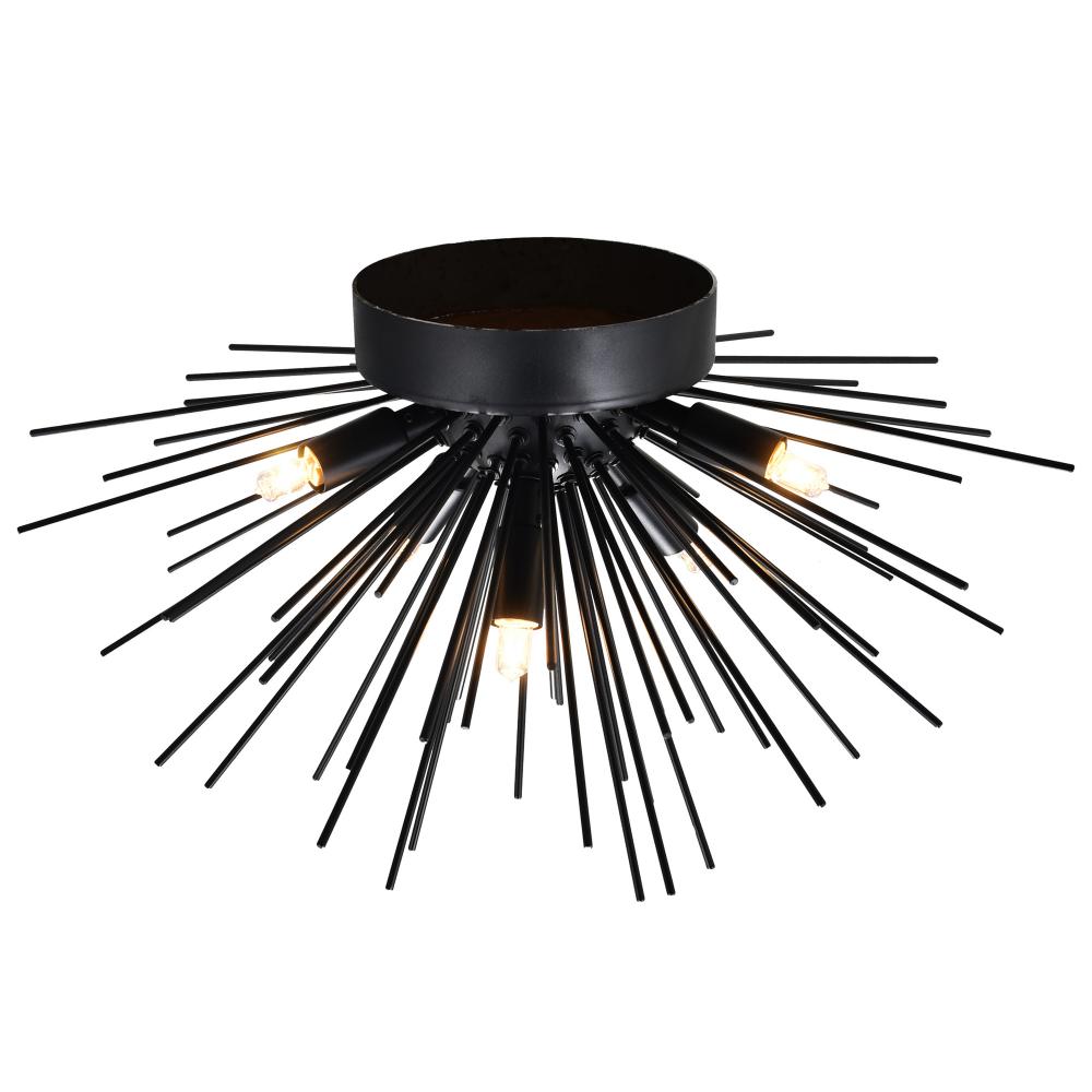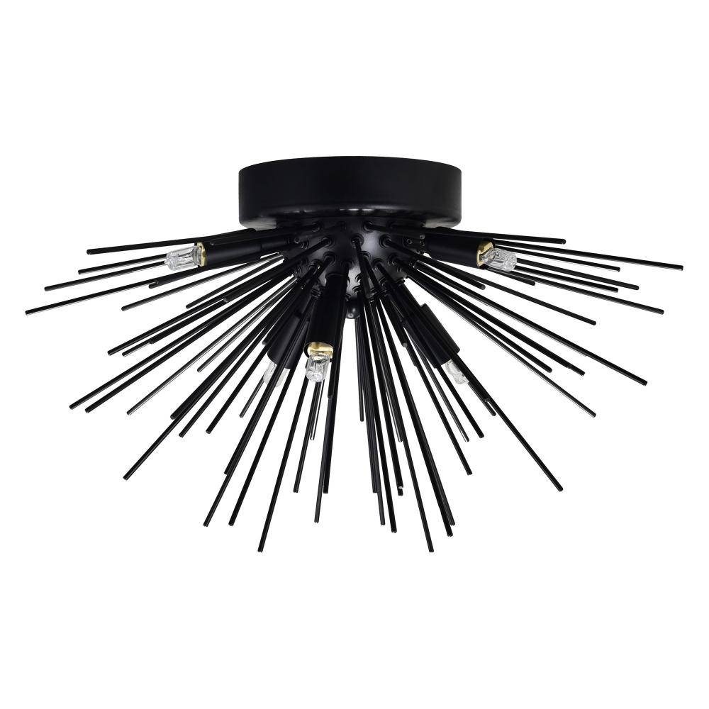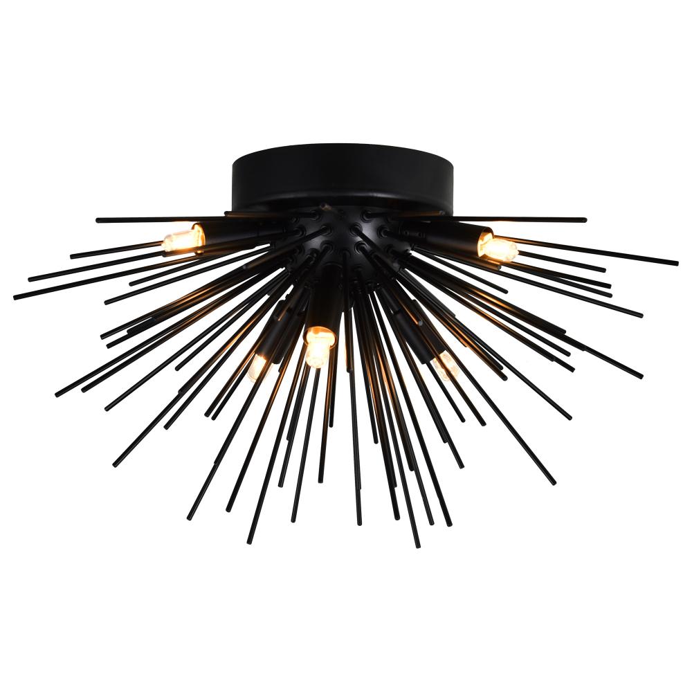 Illuminate your home with the Savannah 6-Light Flush Mount Light in a sleek black finish. This striking fixture features a modern starburst design that radiates elegance from every angle. With eight exposed bulbs, it delivers bright, ample lighting to enhance any room with a warm and inviting glow.