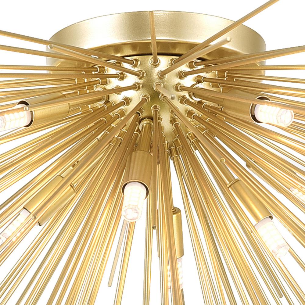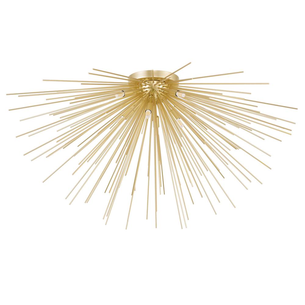 Illuminate your home with the Savannah 8-Light Flush Mount Light in a luxe gold leaf finish. This striking fixture features a modern starburst design that radiates elegance from every angle. With eight exposed bulbs, it delivers bright, ample lighting to enhance any room with a warm and inviting glow.