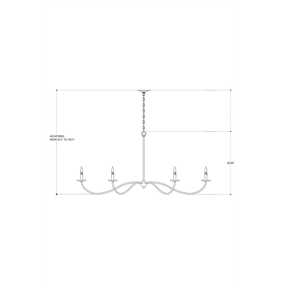 The Saxon Black Chandelier is one of our monumental chandeliers that extends to an impressive 63 inches in diameter. Its shape and the Zanzibar black finish are nods to a bygone era but its slender lines that arc gracefully make its profile modern. Adjustable from 35.5" to 103.5" with use of included chain/rod kit/cable. If your space calls for a longer drop, additional chain/rods/cable is available for purchase.