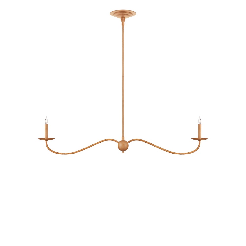 The Saxon Linear Tan Chandelier has a shape that is a nod to a bygone era, but its slender lines that arc gracefully and the natural rattan wrapped around it make its profile feel modern. Its reach makes it perfect for above kitchen islands and bars. The stylistic notes it exudes include traditional, transitional, and coastal chic. This is an artisanal piece, as the rattan is painstakingly wrapped by hand. Adjustable from 17" to 58.5" with use of included chain/rod kit/cable. If your space calls for a longer drop, additional chain/rods/cable is available for purchase.