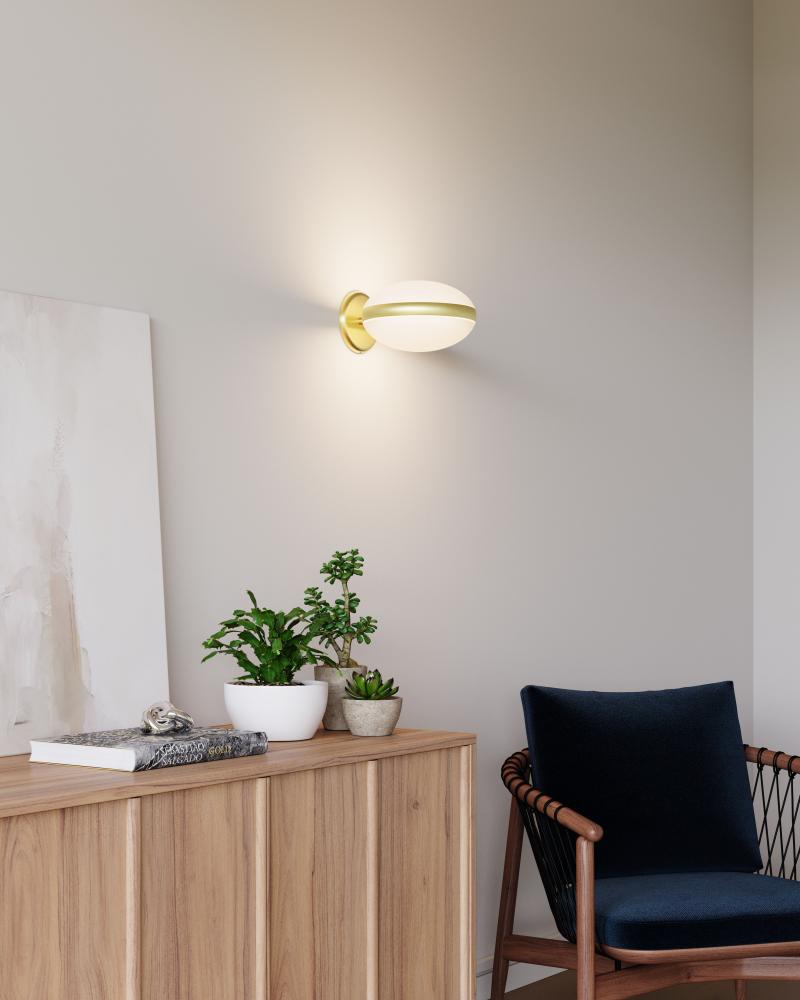This collection of Sconces and Chandeliers feature an oval acrylic dome and lightweight aluminum frame, creating evenly diffused LED light. Pillows celebrates the optical effect of calming curvilinear form and flowing metal enclosure. The entire collection is available in Brass Finish, Polished Chrome, and Satin Black. Scaled for residential, hospitality and commercial settings for an enduring modern presence.