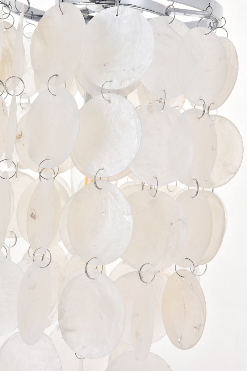 Chrome finish pendant with dreamy off-white shells adorning the tiers