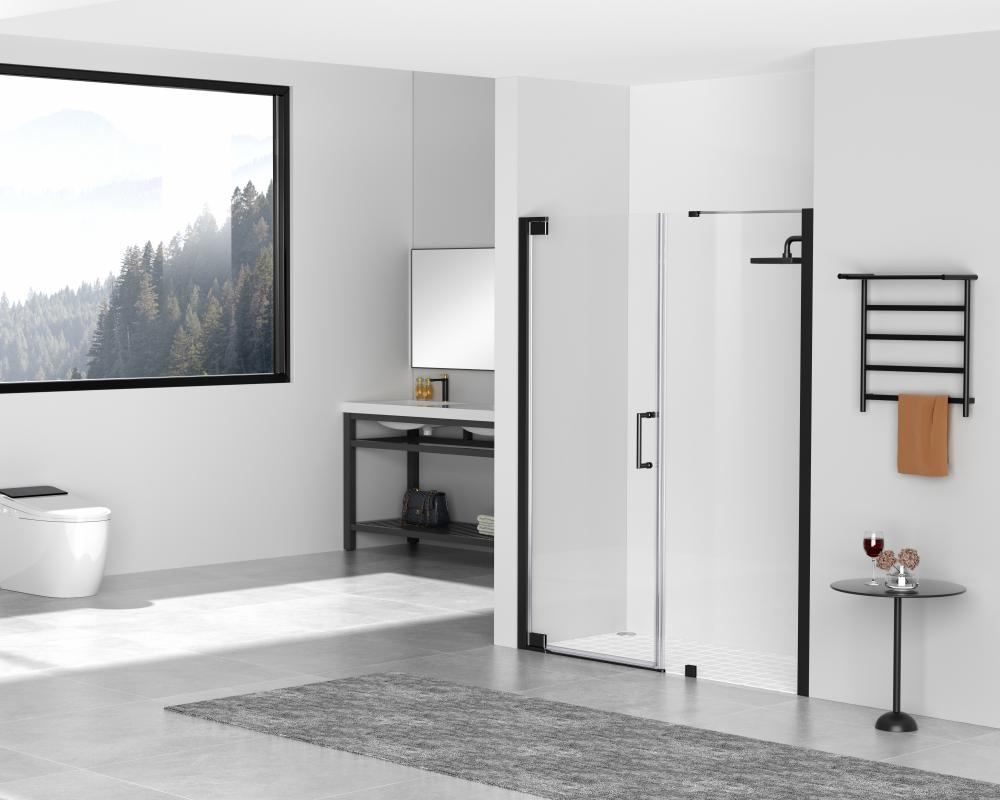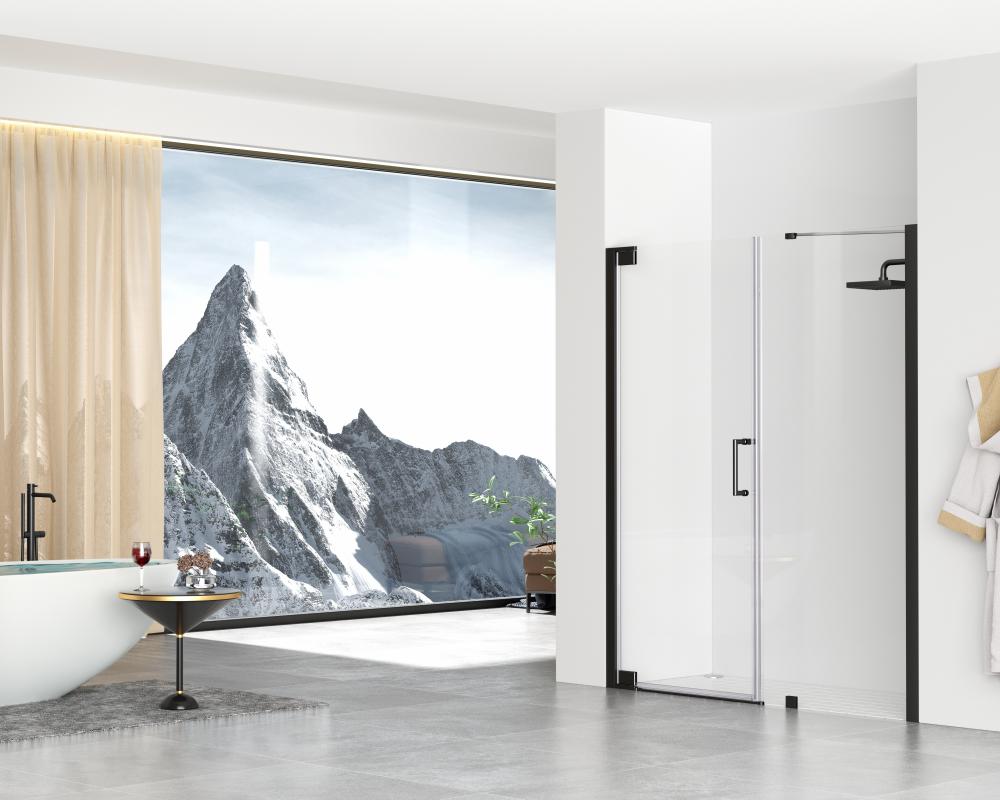 Transform your bathroom into a luxurious oasis with our stunning shower doors! Our doors are designed to offer both functionality and style, making your shower experience more enjoyable and comfortable. Crafted from high quality materials, our shower doors are not only durable but also easy to maintain, making them a practical and long lasting additional to any bathroom. We have four finishes available to choose from to help complement your bathroom décor and aesthetics. Semi-frameless hinged shower door with heavy-duty hinges and in-line panel supported by low profile clips. Full length shower door seal thresholds are included to prevent any leaks.