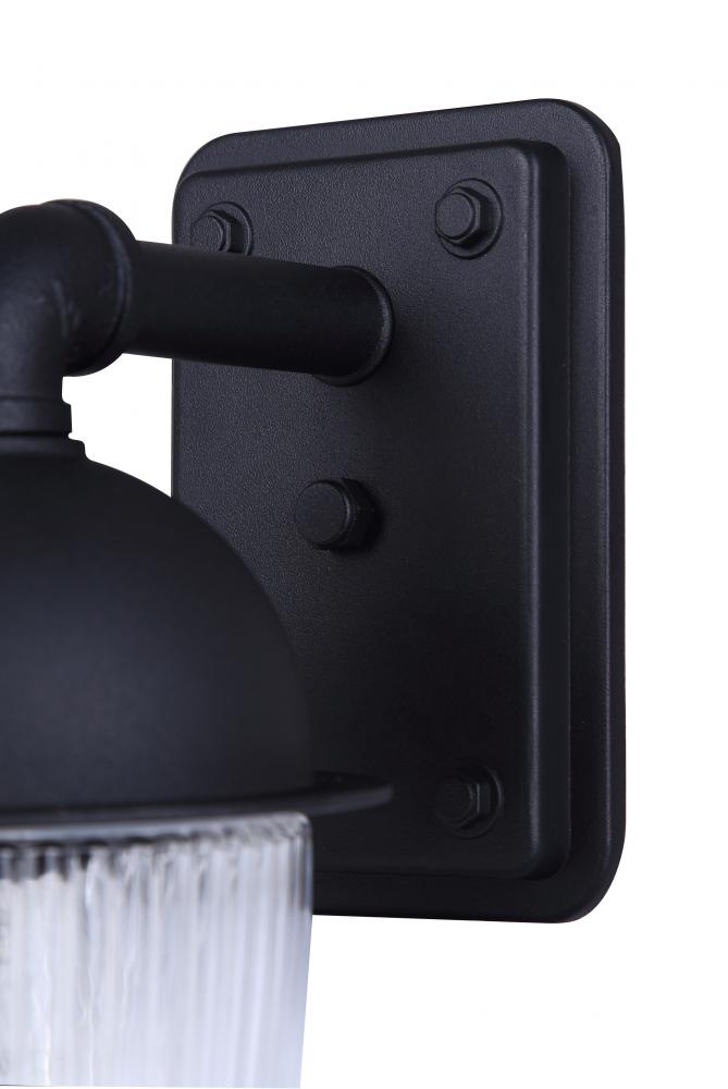 Illuminate your outdoor spaces with the rugged elegance of our SENI Outdoor Light, inspired by timeless craftsmanship and rustic charm. Featuring a matte black finish and clear ribbed glass, this modern coach-style fixture seamlessly blends industrial allure with vintage sophistication. Standing at 10 inches tall and measuring 5 inches wide by 7 inches deep, its compact size is perfect for accentuating porches, pathways, and garden areas.Crafted for durability in wet locations, the SENI Outdoor Light withstands the elements while casting a warm, inviting glow through its textured glass. Accommodating a single 60W Type A bulb, it not only enhances visibility but also adds a nostalgic touch to your outdoor decor, evoking the timeless appeal of rustic industrial design.