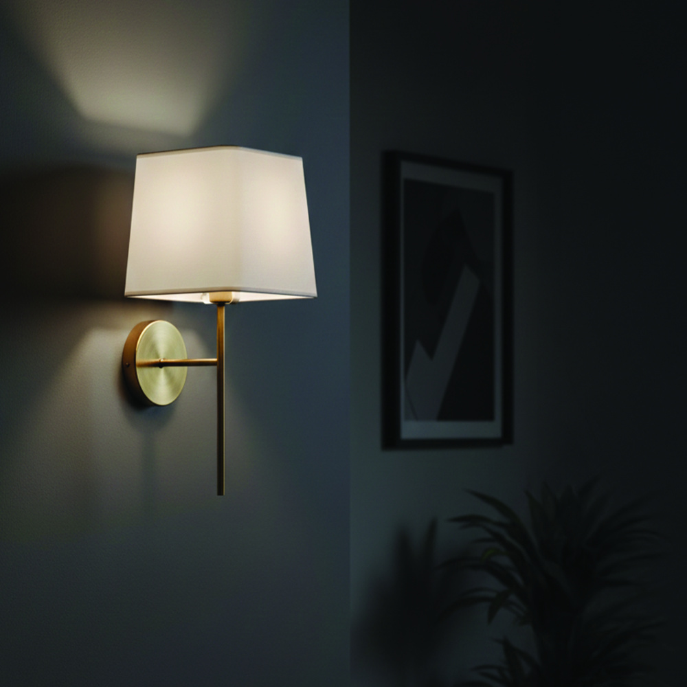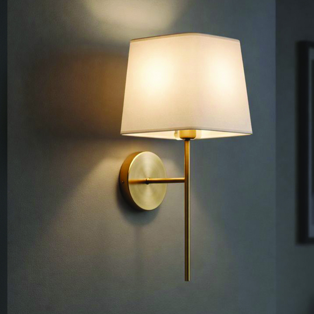 SERAPHINA 1 Light Wall Lamp Gold Finishw with White Fabric Shade