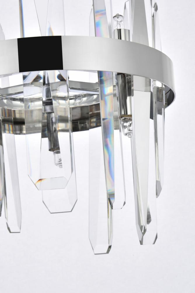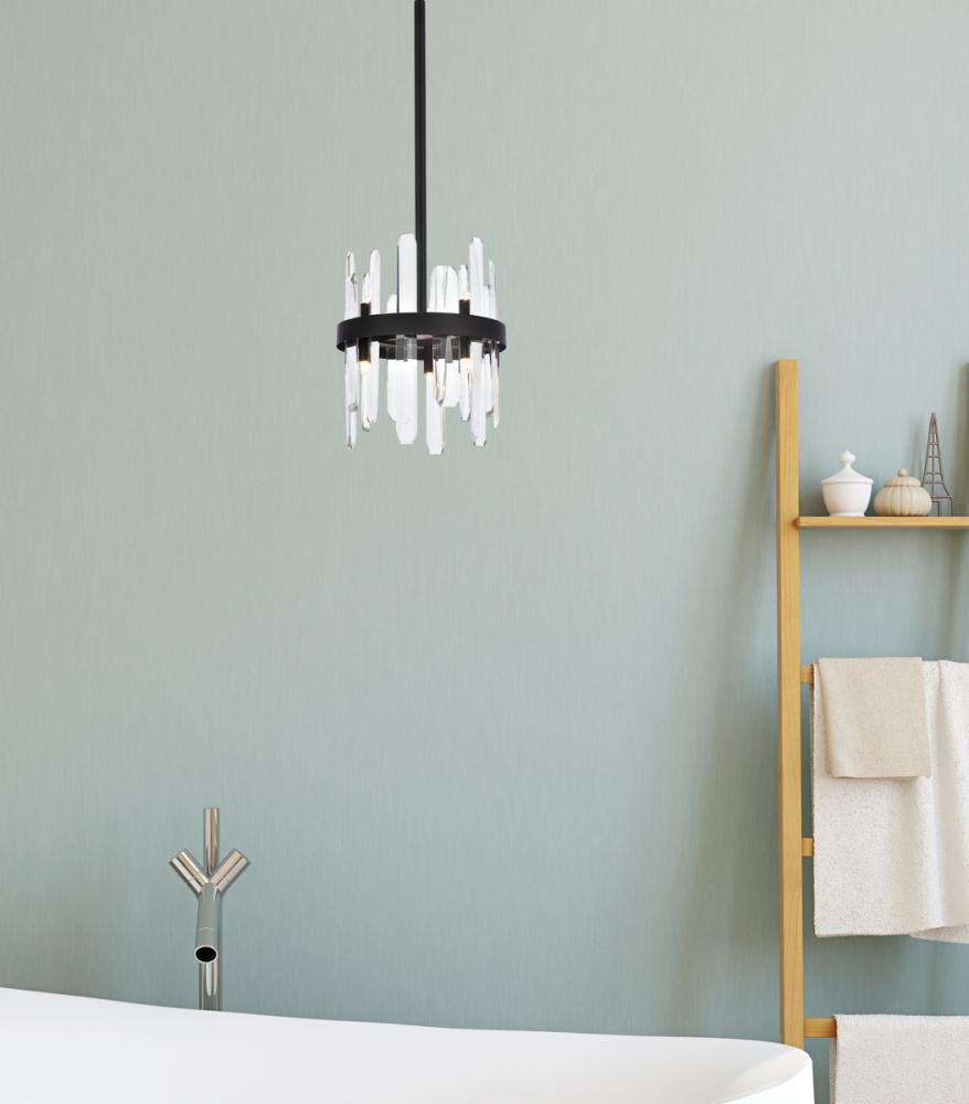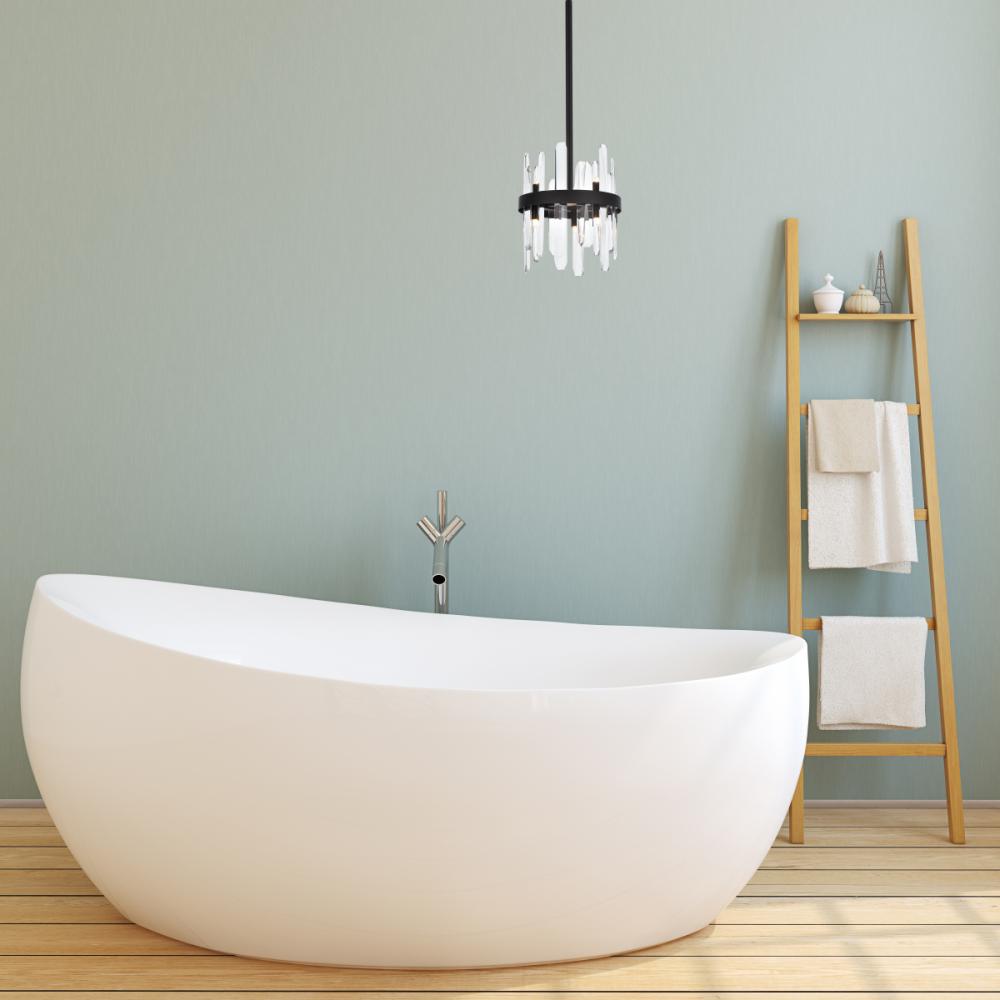Modern crystal chandelier features top and bottom tier crystal prisms staggered along the wrought iron frame. The thick metal frame wraps around top grade crystal prisms ensure it is built to last, definitely worth it. Hang this work of art and dim the lights for a bit of sophisticated lighting in your home. Get lost in a beautiful light and sleek design available in multiple finishes. The hanging rod conveniently comes with a slope ceiling adapter, perfect for your vaulted or angled ceiling.