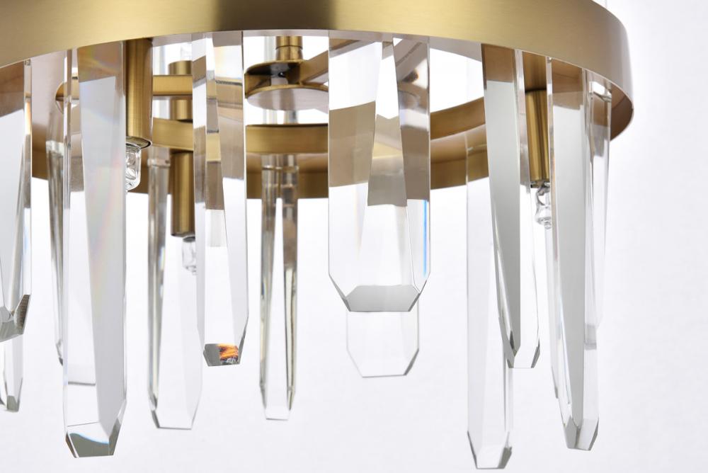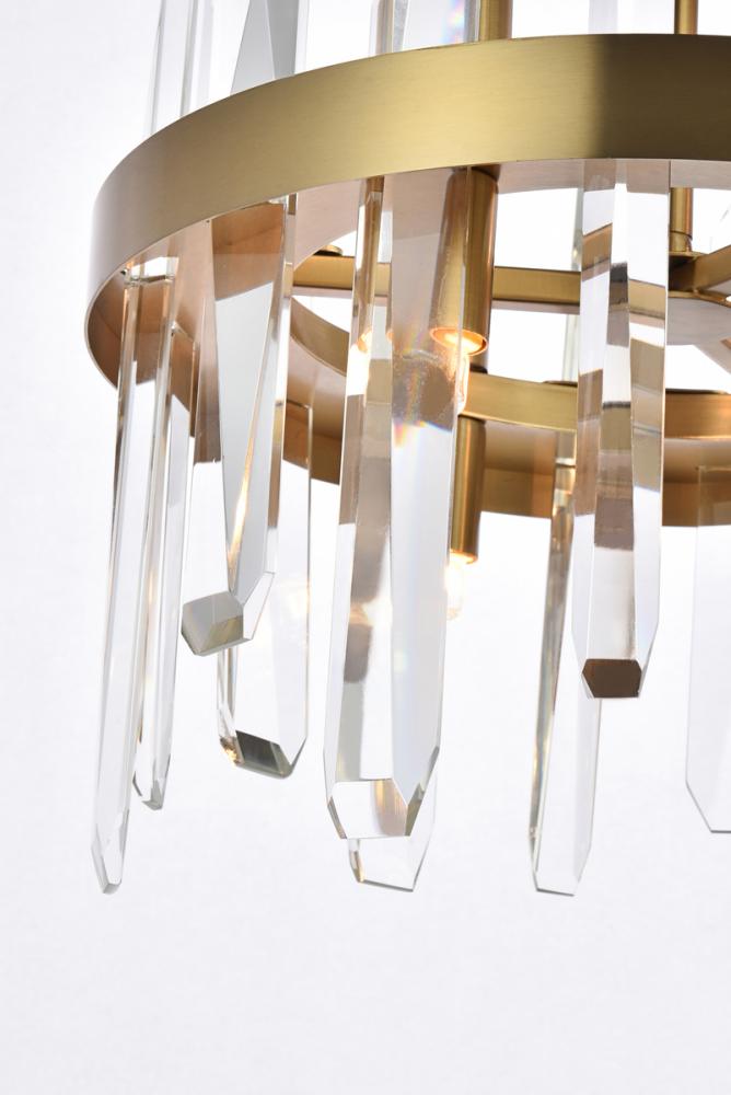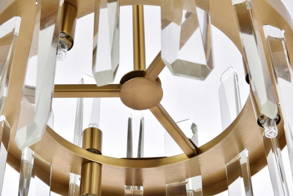 Modern crystal chandelier features top and bottom tier crystal prisms staggered along the wrought iron frame. The thick metal frame wraps around top grade crystal prisms ensure it is built to last, definitely worth it. Hang this work of art and dim the lights for a bit of sophisticated lighting in your home. Get lost in a beautiful light and sleek design available in multiple finishes. The hanging rod conveniently comes with a slope ceiling adapter, perfect for your vaulted or angled ceiling.