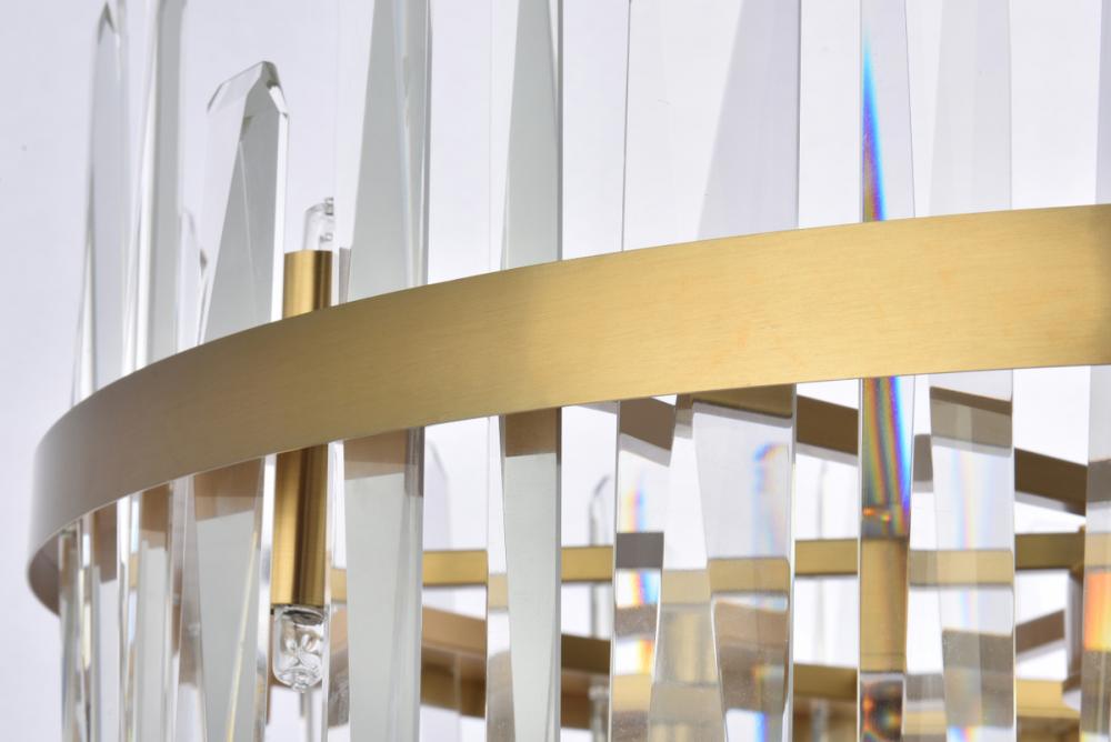 Modern crystal chandelier features top and bottom tier crystal prisms staggered along the wrought iron frame. The thick metal frame wraps around top grade crystal prisms ensure it is built to last, definitely worth it. Hang this work of art and dim the lights for a bit of sophisticated lighting in your home. Get lost in a beautiful light and sleek design available in multiple finishes. The hanging rod conveniently comes with a slope ceiling adapter, perfect for your vaulted or angled ceiling.