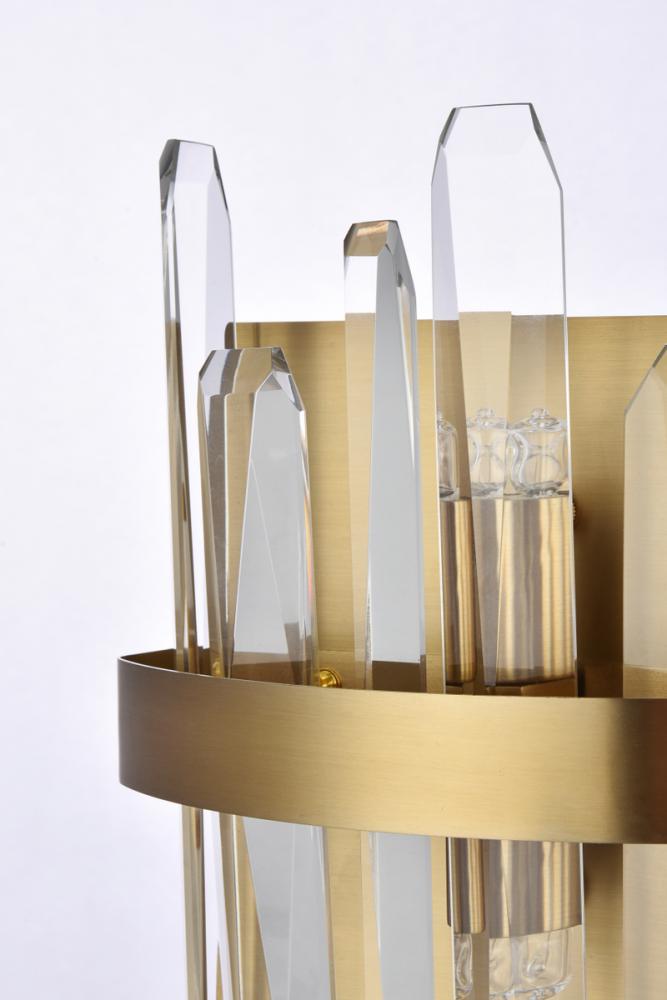 Modern crystal wall sconce features top and bottom tier crystal prisms staggered along a wrought iron frame. The thick metal frame wraps around top grade crystal prisms ensure it is built to last, definitely worth it. Mount this work of art and dim the lights for a bit of sophisticated lighting in your home. Get lost in a beautiful light and sleek design available in multiple finishes.