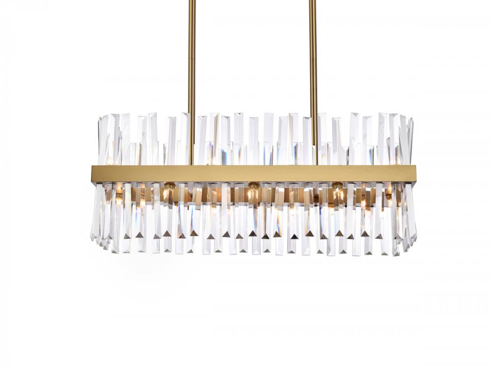 Serephina 30 inch crystal rectangle chandelier light in satin gold