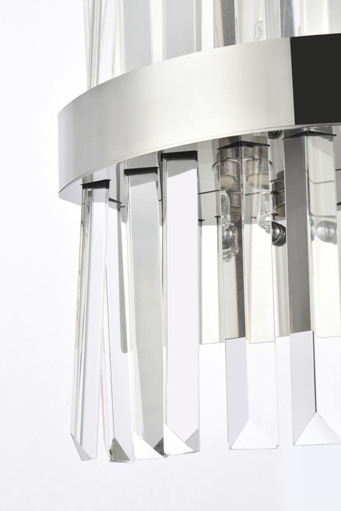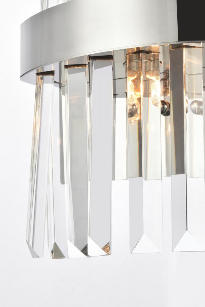 Modern crystal wall sconce features top and bottom tier crystal prisms staggered along a wrought iron frame. The thick metal frame wraps around top grade crystal prisms ensure it is built to last, definitely worth it. Mount this work of art and dim the lights for a bit of sophisticated lighting in your home. Get lost in a beautiful light and sleek design available in multiple finishes.
