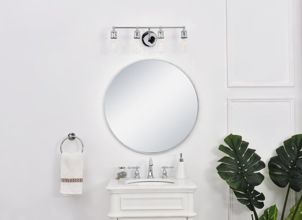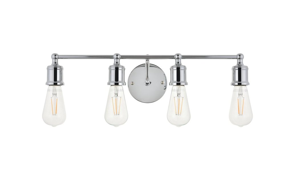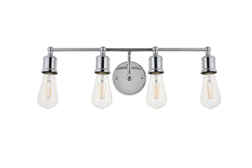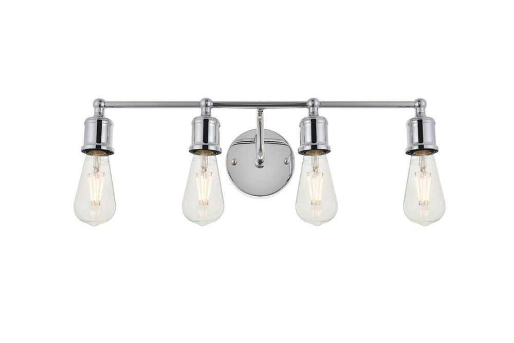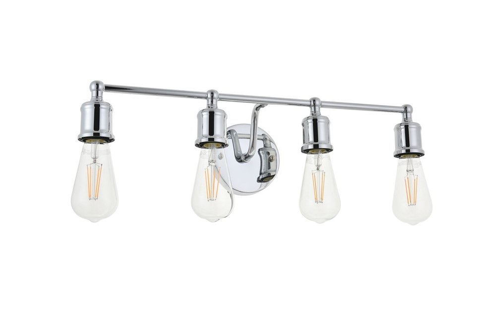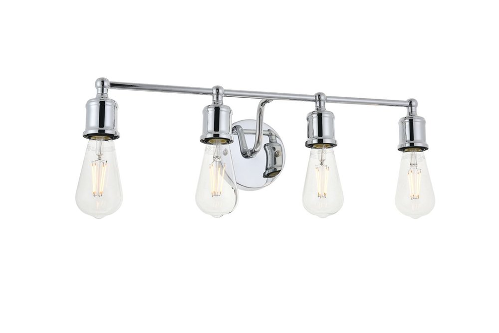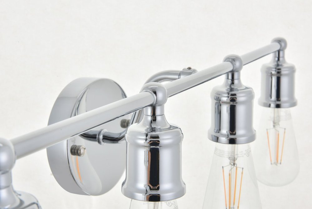 The classical elegance of the Serif collection wall lamp in a chrome finish brings graceful allure. The arms--reminiscent of a classical font-- supports the 4 lights that emit a reassuring brilliance, and its gentle presence makes it a wonderful fixture to greet your guests at the entry way, illuminate your cabinets in the living room, or shine in the powder room.
