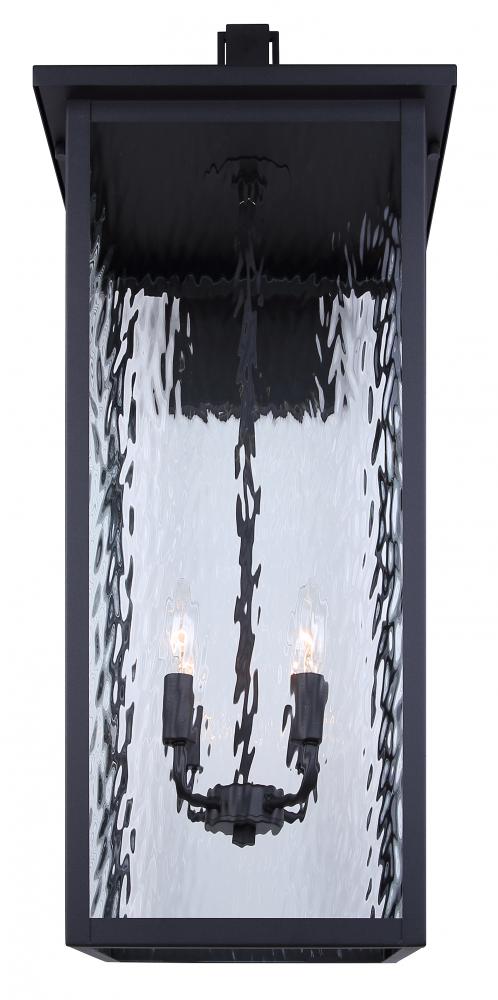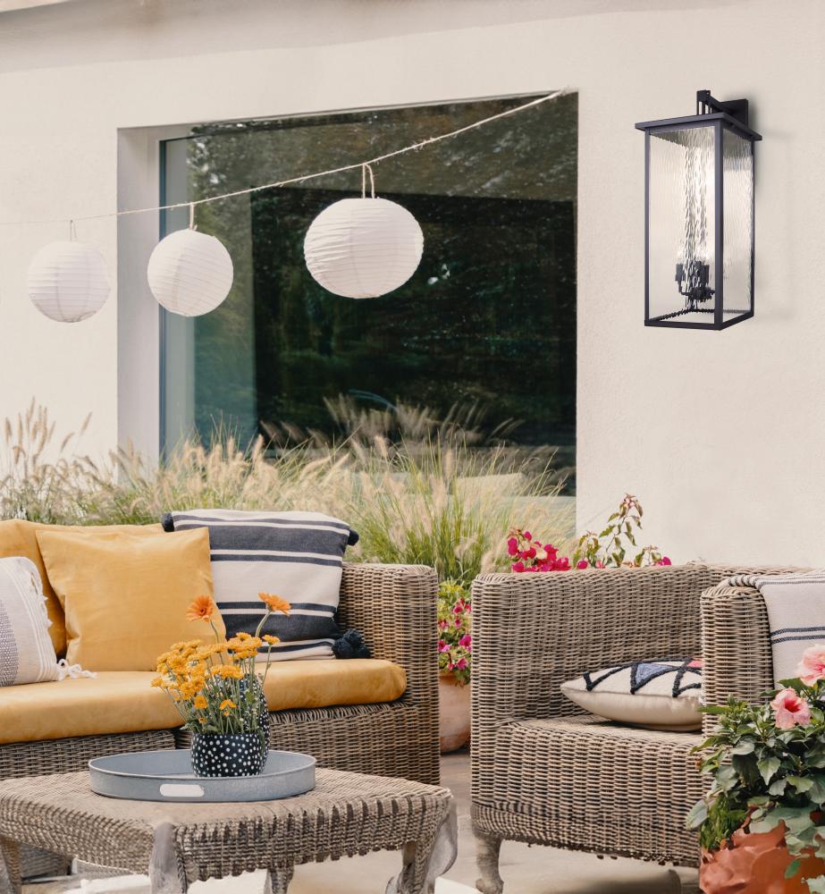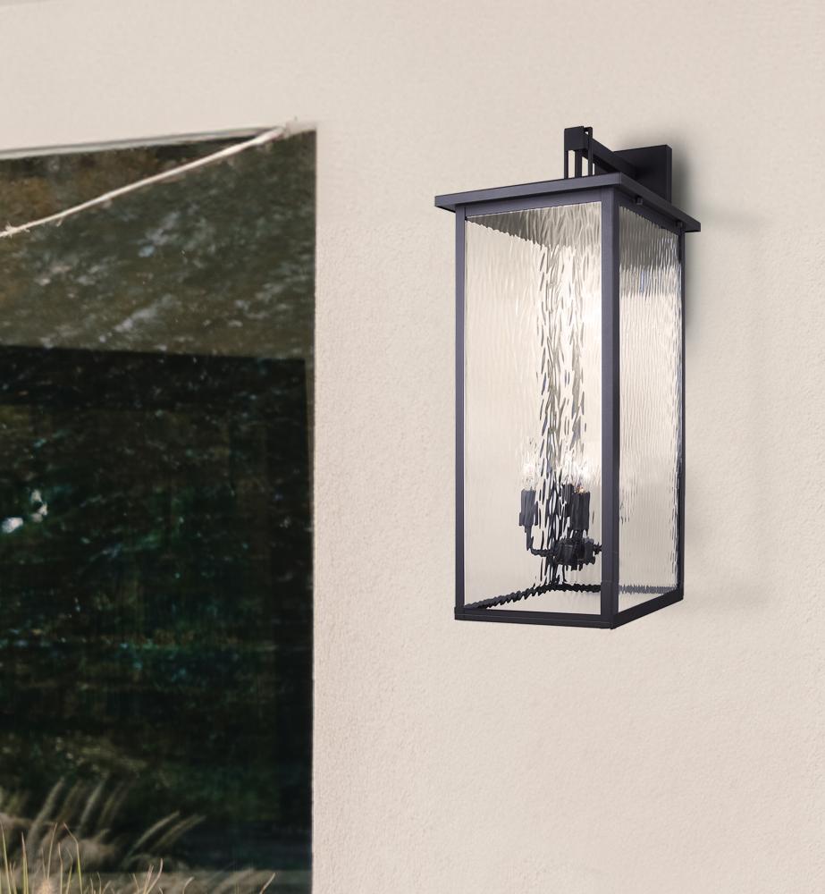 Elevate the exterior of your home with the SHANA Outdoor Wall Lantern. This stunning fixture, finished in sleek black with watermark glass panels, brings both style and function to your outdoor spaces. Standing tall at 30 inches, SHANA makes a bold statement while providing ample illumination for your porch, patio, or entryway. With four 60W C-type bulbs, it delivers a warm and welcoming glow, perfect for enhancing the ambiance of any outdoor setting. The EasyConnect™ feature ensures hassle-free installation, allowing you to enjoy your new lighting solution in no time. Built to withstand the elements, SHANA is rated for wet locations and comes with a one-year warranty, giving you peace of mind and long-lasting beauty.