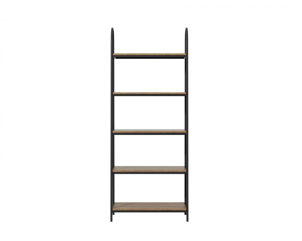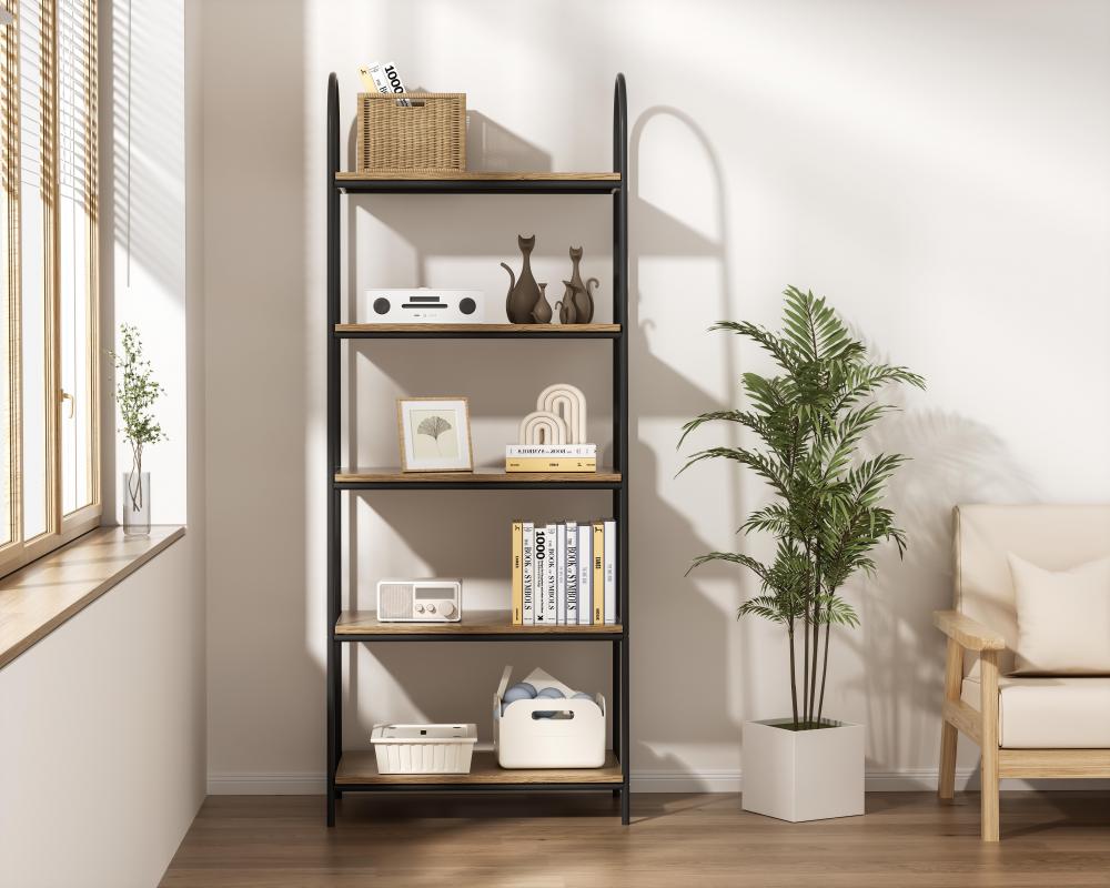Five generously sized shelves provide plenty of room for everything from decorative items to practical storage bins.