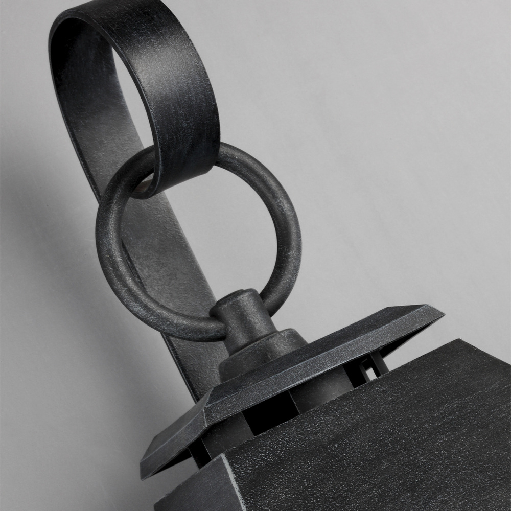 Inspired by traditional Parisian style lanterns, the Shepherd outdoor lighting collection by features a decorative shepherd's crook, a latched and hinged front door panel, an inner Case White glass shade, Clear Seeded outer glass to create the visual appearance of vintage gas lanterns. Made of a proprietary composition for outstanding durability even in the harshest elements, the collection has a 5-year warranty. Offered in either Dark Weathered Zinc or Heritage Copper finishes.