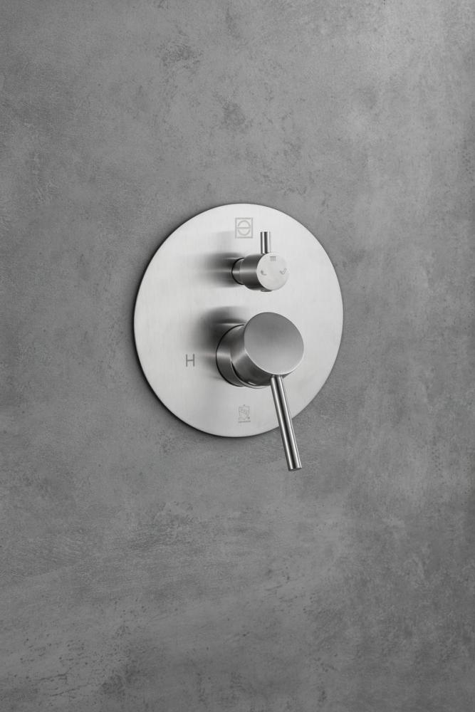 The set includes a matching valve trim with two handles with a convenient push-button three-valve diverter, allowing you to control water temperature and flow with precision.
