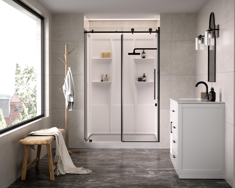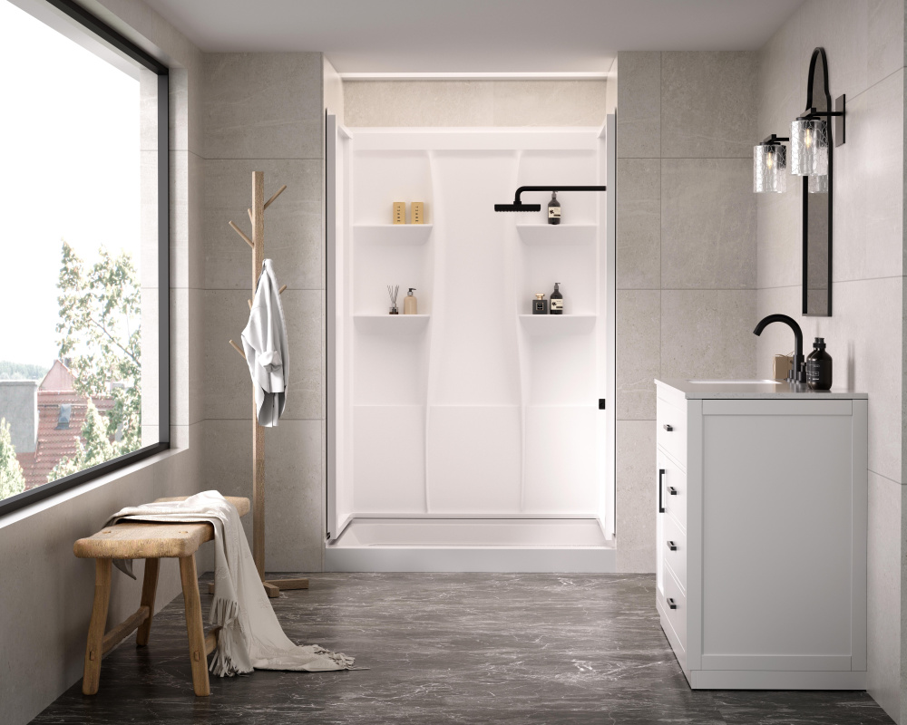 Upgrade your shower space with a sleek, functional, and easy-to-install three-piece acrylic shower wall surround that blends modern design with practical convenience. Featuring four built-in shelves, this surround ensures you always have space to keep shampoos, soaps, and essentials neatly stored. Designed for hassle-free installation, this unit features a direct-to-stud mounting system with built-in nailing flanges, ensuring a secure and lasting connection to the wall. The caulkless construction reduces the risk of leaks, providing peace of mind and long-term durability. With a bright white, high-gloss acrylic finish, this shower surround offers a modern, polished look that resists stains and is incredibly easy to clean. Unlike fiberglass-backed alternatives, the smooth, lightweight material is easy to handle and install without irritation. Whether you’re completing a full renovation or a quick upgrade, this shower surround effortlessly enhances the functionality and aesthetic of any bathroom spac