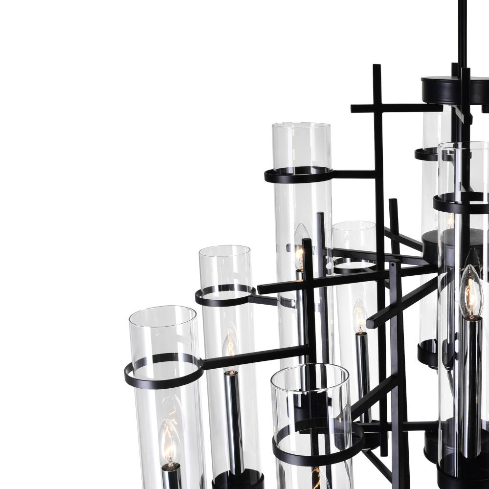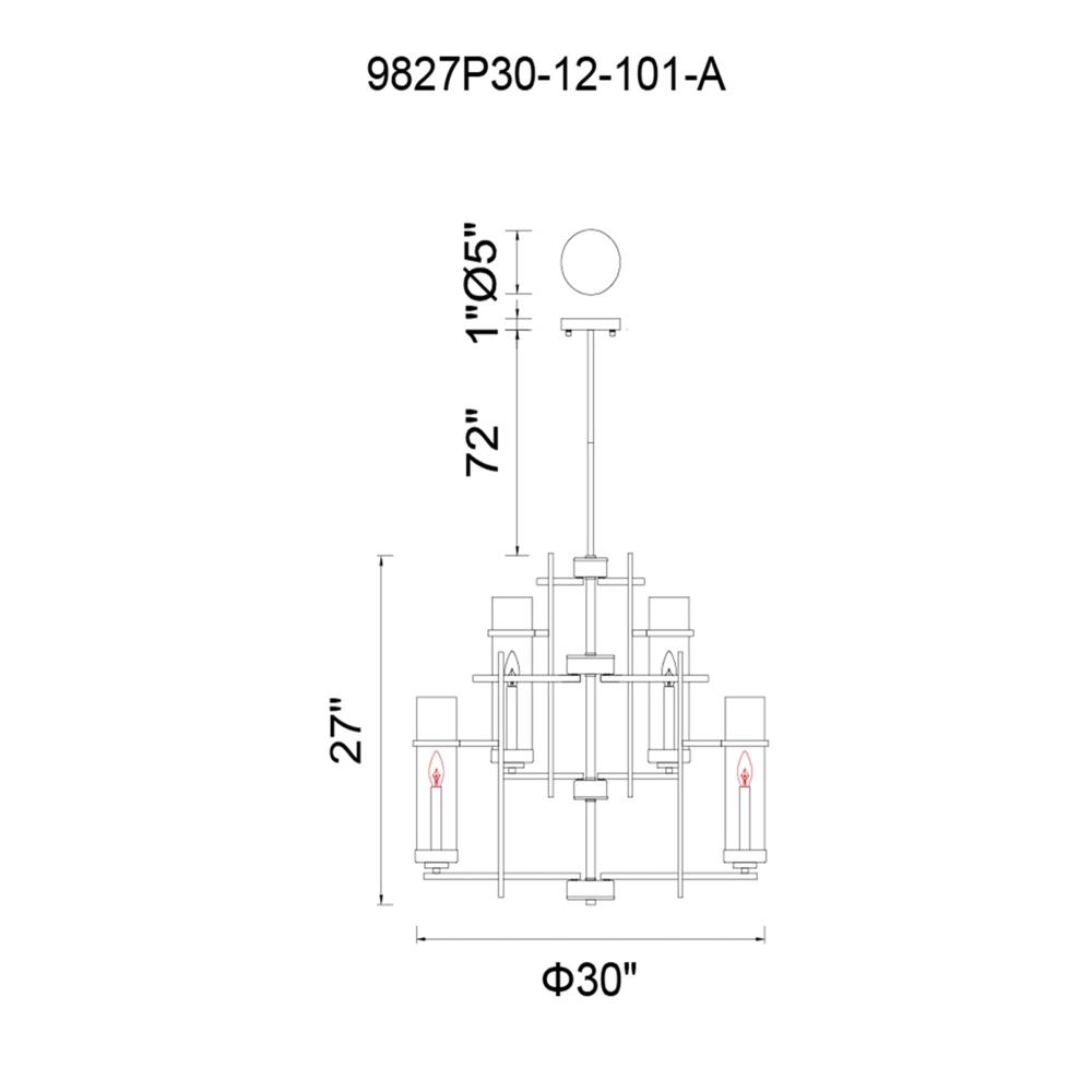 Bring a blend of modern elegance and timeless charm to your home with the Sierra 12-Light Up Chandelier. Featuring a 30-inch round design, this chandelier showcases tiered cylindrical glass shades that encase candelabra bulbs, offering both ample illumination and a warm, inviting atmosphere. Perfect for contemporary spaces seeking a sophisticated lighting centerpiece.